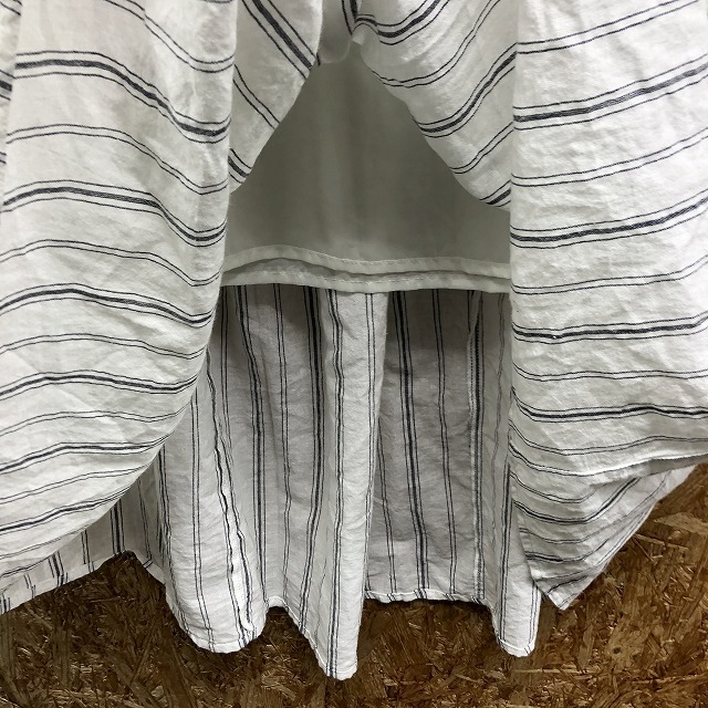 | 商品タイトル | earth music&ecology F レディース 薄手 サーキュラースカート 裏地付き ロング丈 ストライプ柄 ウエストゴム 綿×麻 ホワイト×ネイビー |