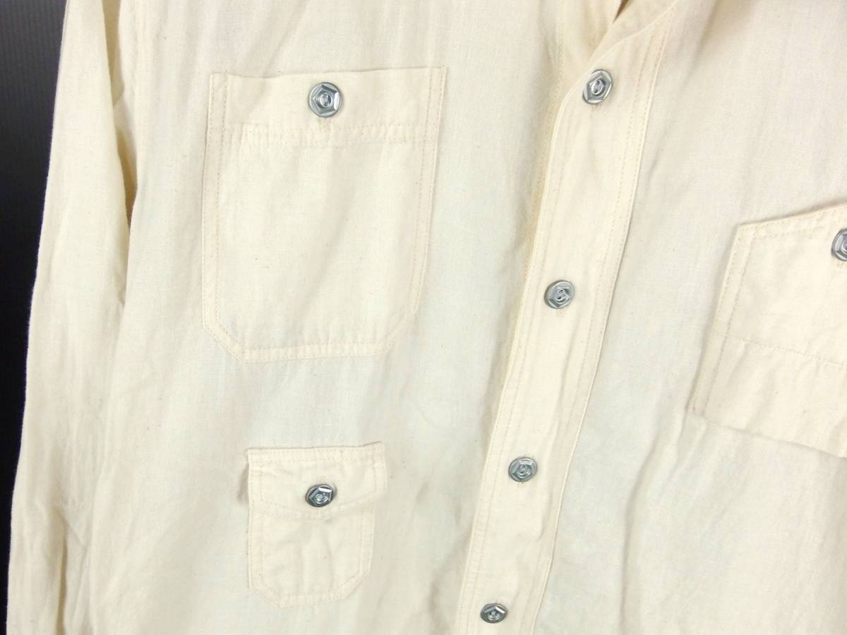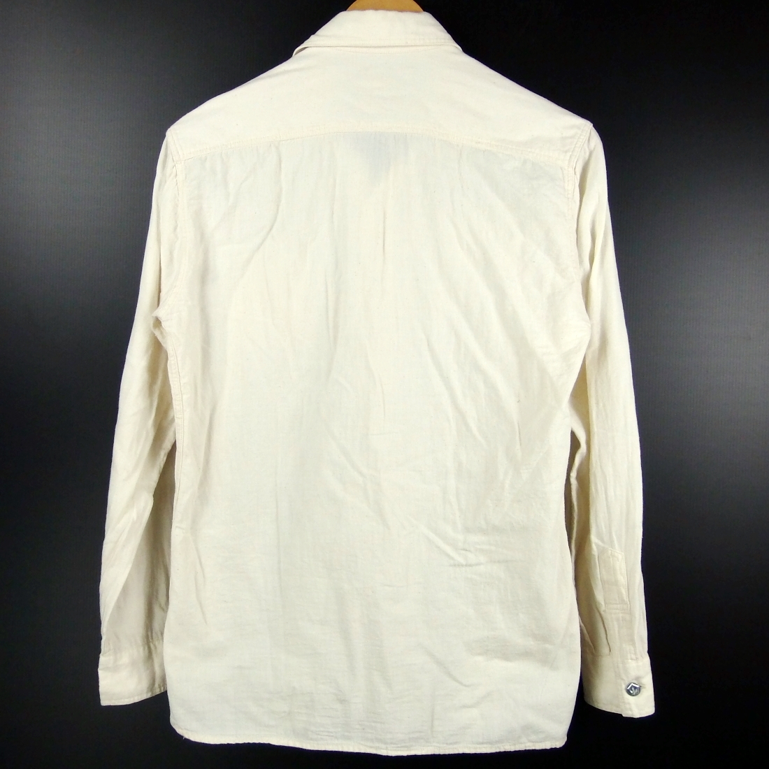 | 商品説明 | ■商品について ブランド名:THE Y.M.WALK ON 販売元:(株)リベリ 生産国:MADE IN JAPAN 日本製 サイズ:36 カラー:アイボリー系 素材:COTTON 100% ・衿 チンストラップ付き ・左右非対称ポケット ・裾 マチ付き 本格的なワークディテールが特徴の、 ウォークオンのワークシャツです。 着こなしの幅が広いアイテムなのでお勧めですよ。 是非この機会にご購入を検討頂けますと幸いです。 表記サイズ:36 肩幅:約44cm (両肩直線) 身幅:約49.5cm (脇下) 身幅:約47cm (胴幅) 袖丈:約58cm 着丈:約70cm (後身 衿付根から) ※平置にて計測 ※素人採寸のため多少の誤差はお許し下さい ■状態について 全体的に着用に伴う使用感はありますが、 まだまだ問題なく着用頂ける状態です。 中古品のため少しでも状態を気にされる方、 完璧な商品をお求めの方は入札をお控え下さい。 -------------------------------------------------------------------- 他にも衣料品を中心に出品させて頂いております。 複数落札して下さった場合には、まとめて発送させて頂きますので、 送料がお得になります。⇒【出品リスト】 |