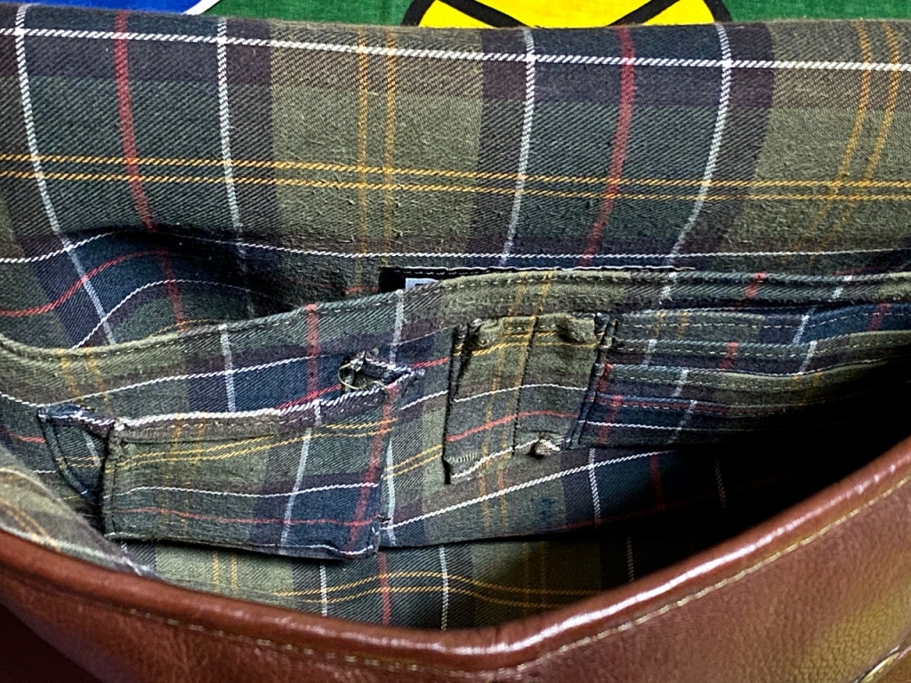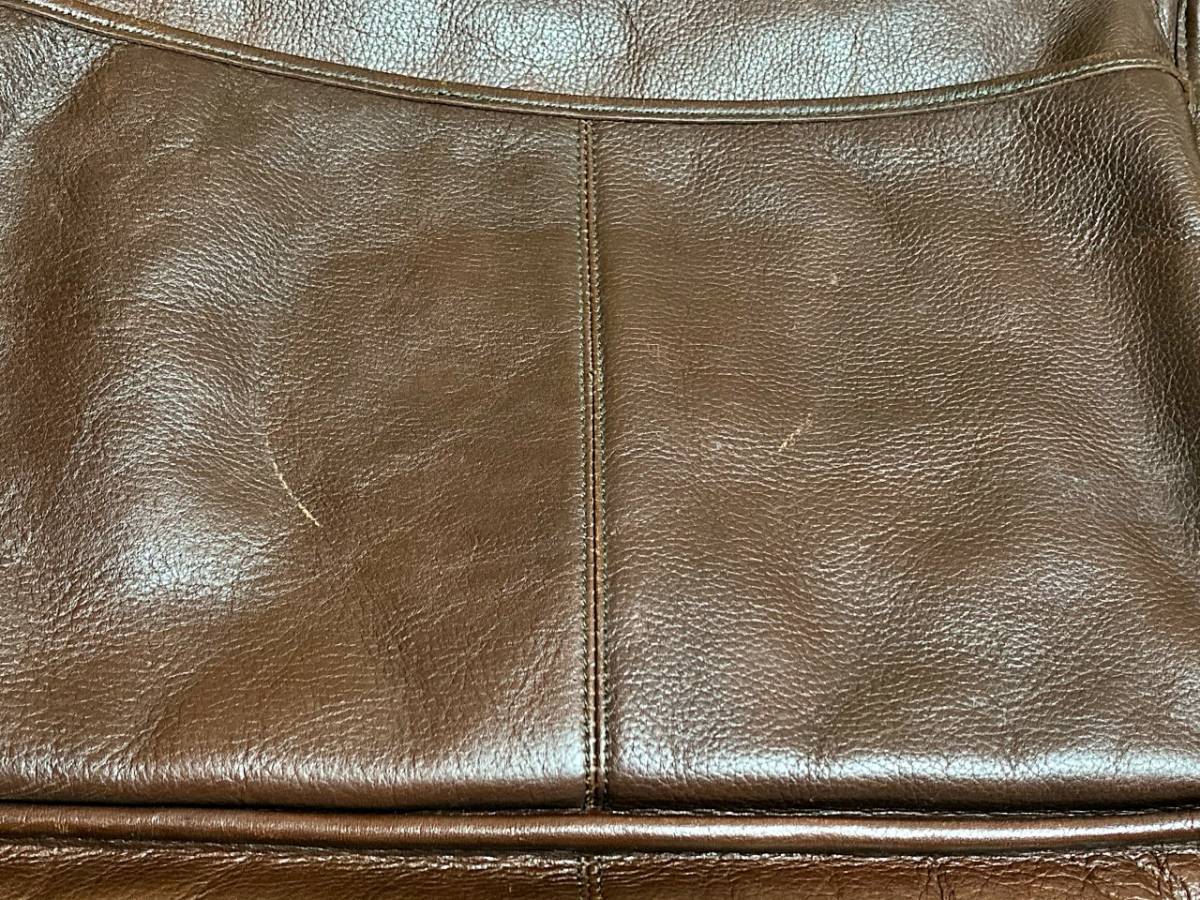 フラップポケット内側の生地に一部ダメージ、バッグ内側にシミ、レザー部分の所々スレや小傷が見られます。(画像以外にもあると思います。)その他、USED相応の使用感がありますが、目立ったダメージは見られません。