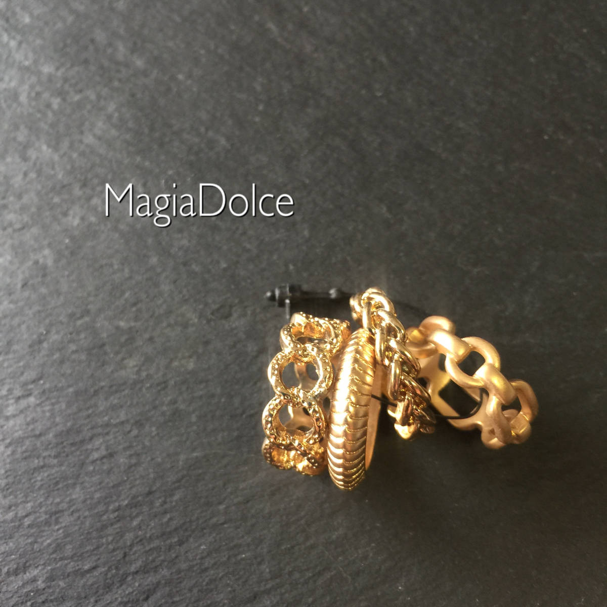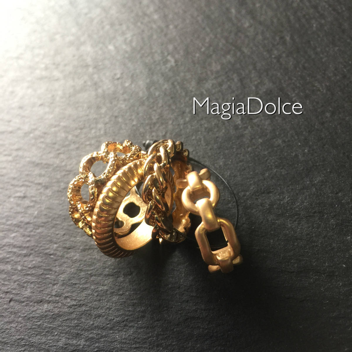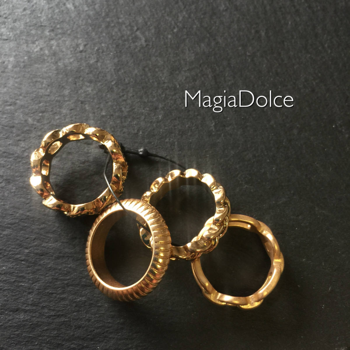送料無料*MagiaDolce 3080●4本セットゴールドリング 指輪 チェーンリング ミンディーリング 7号 マットゴールドチェーンリング 艶消し