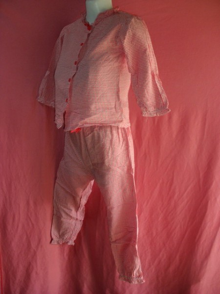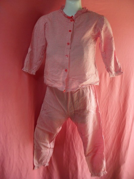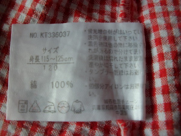 USED キッズ ギンガムチェック パジャマ サイズ120 赤/白系