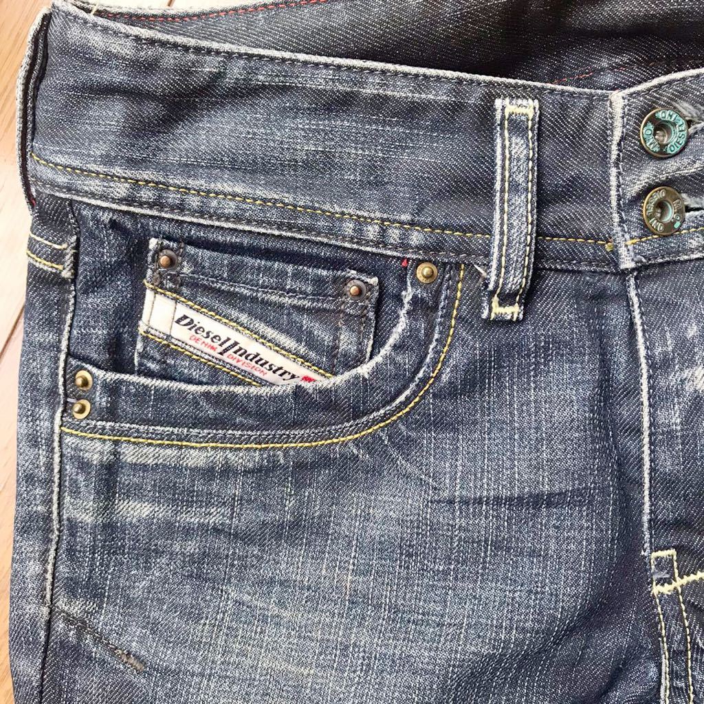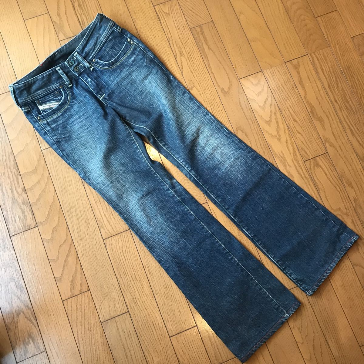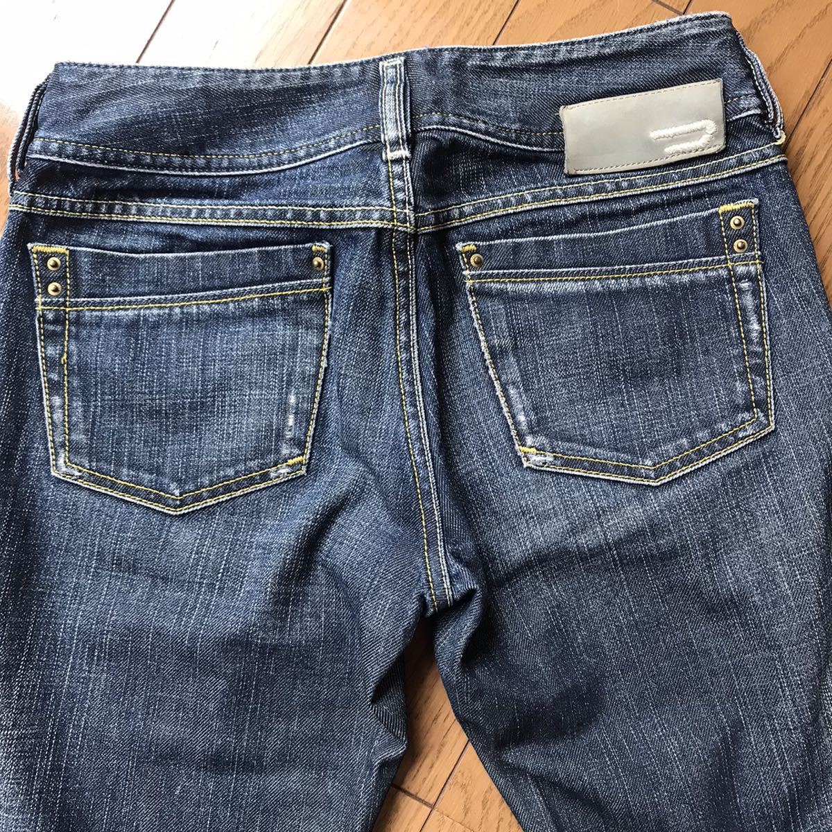 太ももから膝下にかけて、色落ち加工がされていてヴィンテージ感が出ますね。