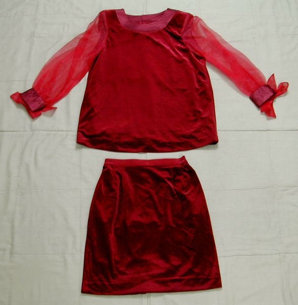 表示サイズ:9AR(B82、W63、H90、T156)  素人平置き採寸:(上着)身幅53、着丈69 (スカート)ウエスト31~、丈45