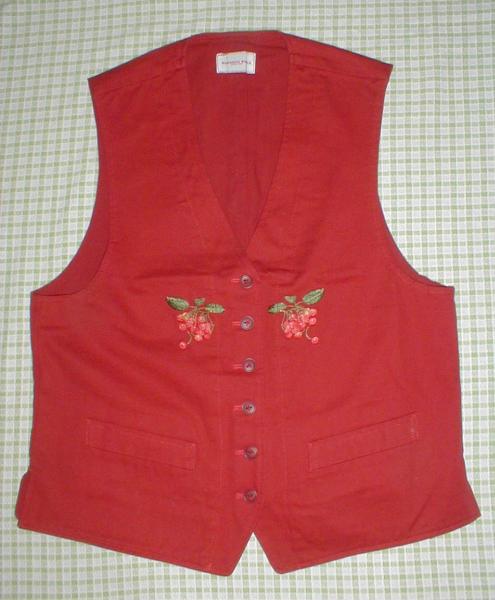 ワンダフルワールドのベストです。チェリー刺繍。赤。新品~1回着用。クレーム・返品は無しでお願い致します。他にも出品しています♪