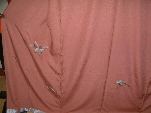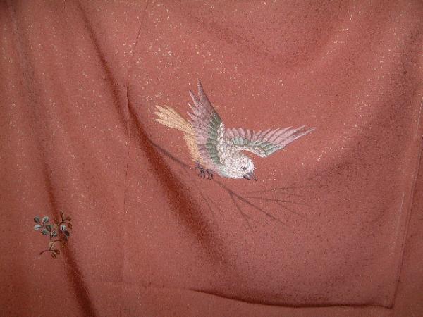 【☆刺繍訪問着☆】☆絹100% ●八掛付 見切りにつきお買い得です。前側に柄は、有りません。全体に金粉が、散りばめてあります。 画像でのご判断で、ご入札をお願い致します。ノークレームノーリターンでのご落札をお待ちしております。