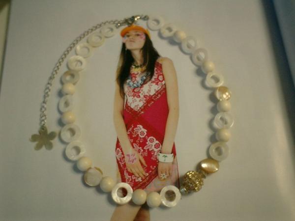 夏らしいシェルリングとホワイトウッドで爽やかな可愛いネックレスを作りました♪シェルリングは13ミリ、ホワイトウッドは10ミリで間にシックなベージュゴールドの15ミリのビーズ玉をアクセントにしました♪動くたびに表情が出て可愛いです♪長さは39センチ+アジャスター13センチで最長52センチ位です。お揃いのブレスレットも出品予定です♪♪ハンドメイドをご理解頂いてノークレーム、ノーリターンでお願いします
