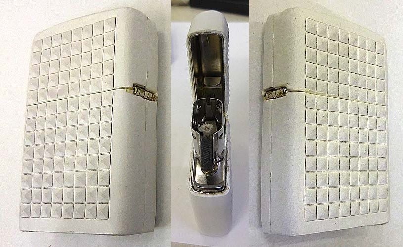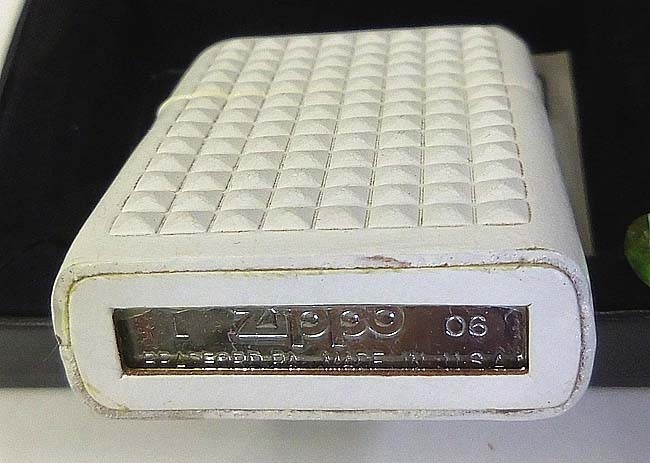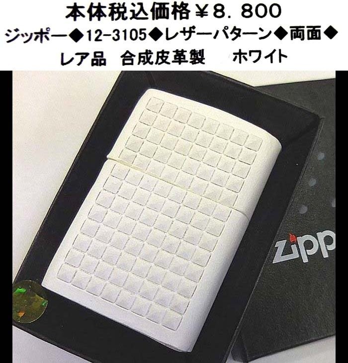 現物写真撮影、この写真の品が届きます。合成皮革巻加工ジッポーで、本革ではありません。一つ一つのマスの4面がピラミット状に加工された集合体ホワイト。新品未使用無傷のベスト品。廃番になっておりますので 、今後の入手困難品です。ビンゴが出品している全ての商品は、店頭販売、他オークション販売、ショッピング販売等重複し販売しております。時間差で売れ切れや、出荷点検検等で傷が付いていたり破損している事もあります。従いまして、お買い上げ頂きましても出荷出来ない場合も有りますので、予めご了承の上お買い求め下さい。ご注文商品は他商品と同梱配送出来ますので、何個ご注文されても送料は1口分です。1.レターパック発送 ¥600 日時指定不可。(郵便レターパック)。2.宅配便発送税込み ¥880日時指定必須(沖縄/離島は別途価格)。必ず 受取日時 をご指定下さい。(例:15日 18~20 時必着)再配達防止の為。 (業者は当社にお任せ)。3.代金引換発送引手数料税込み ¥1、210 日時指定必須(沖縄/離島は別途価格)。 必ず 受取日時 をご指定下さい。(例:15日 18~20 時必着)再配達防止の為。(業者は当社にお任せ)。