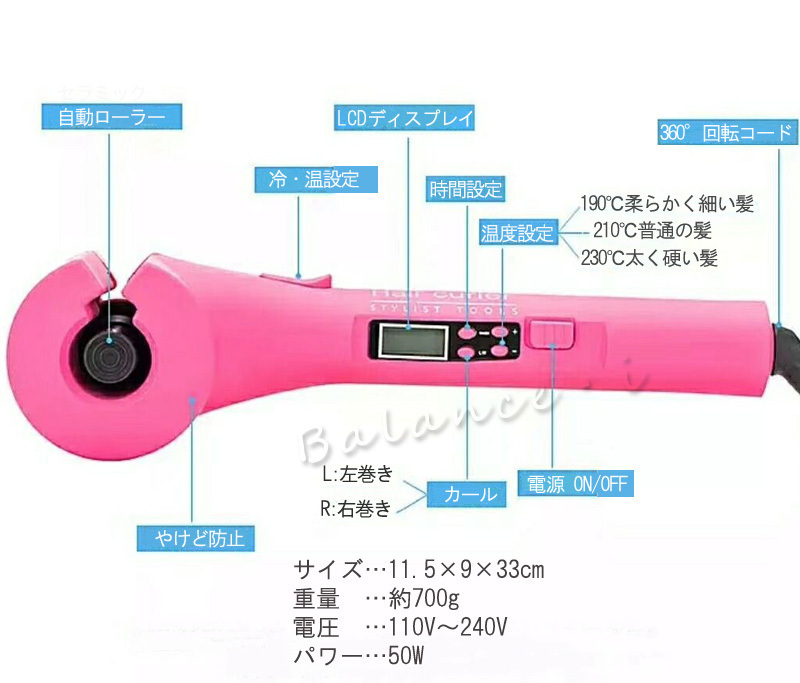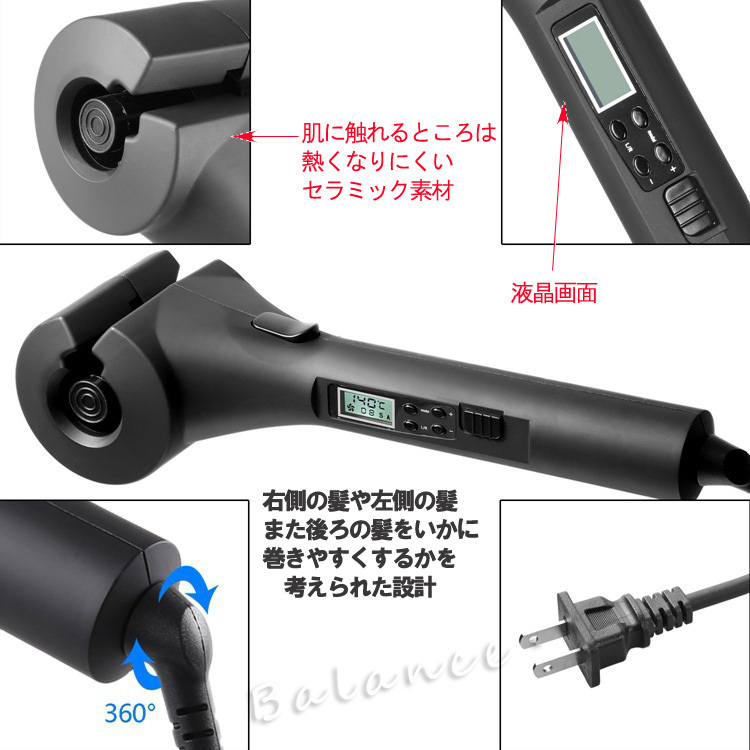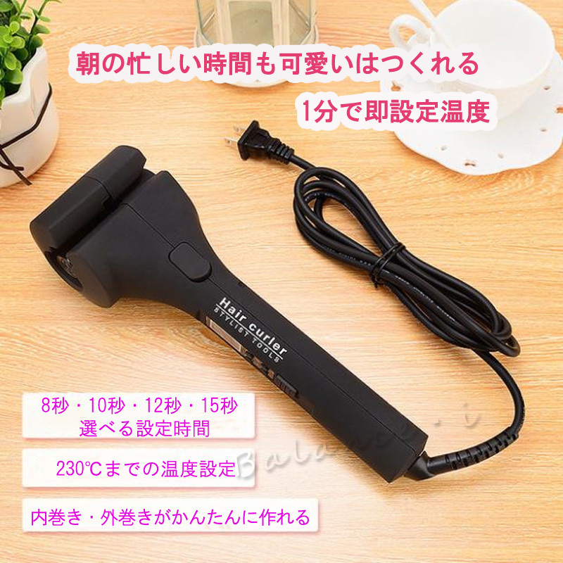 ボタンを押すだけでするすると髪を巻き込みカールを完成させます。