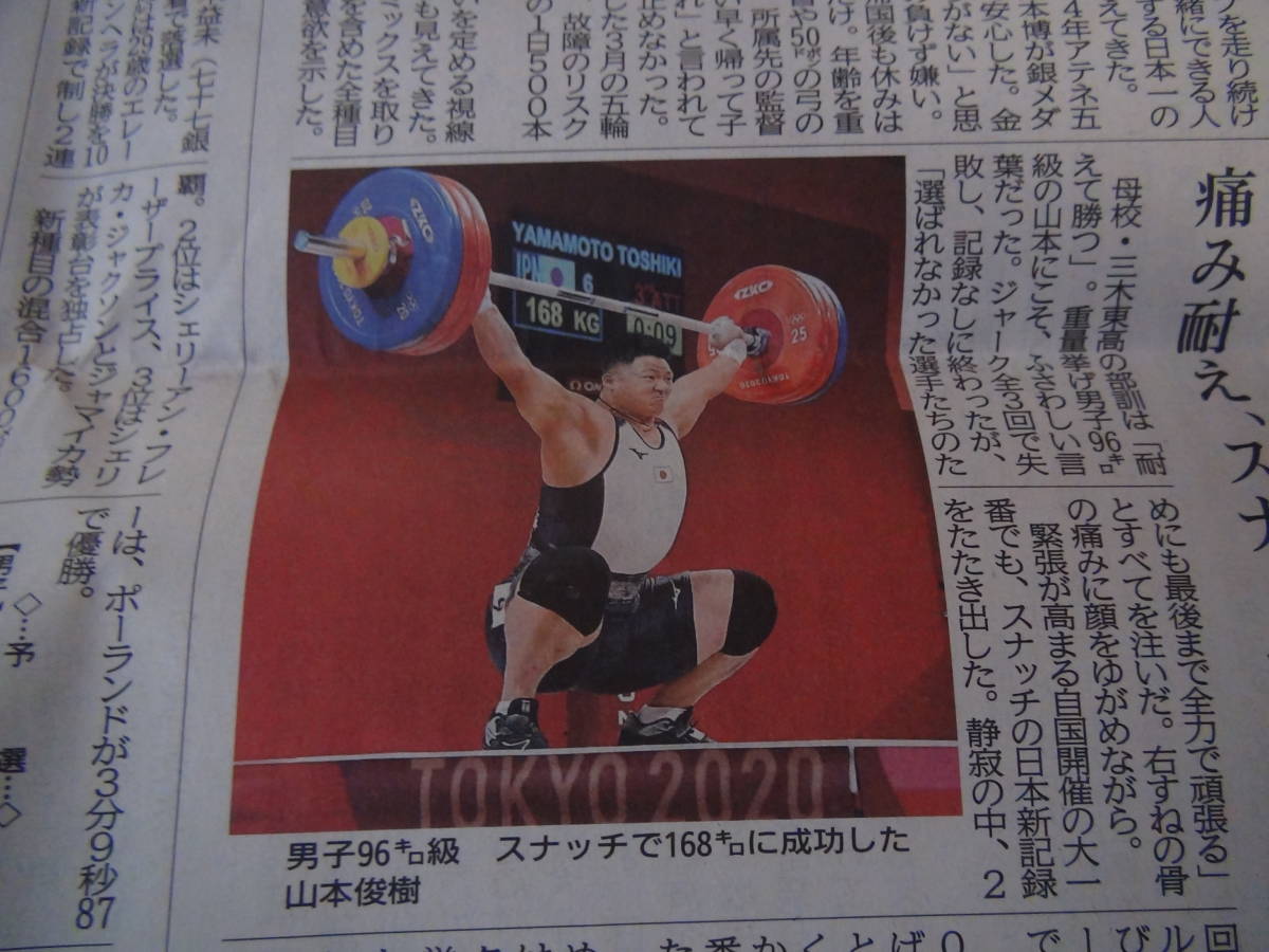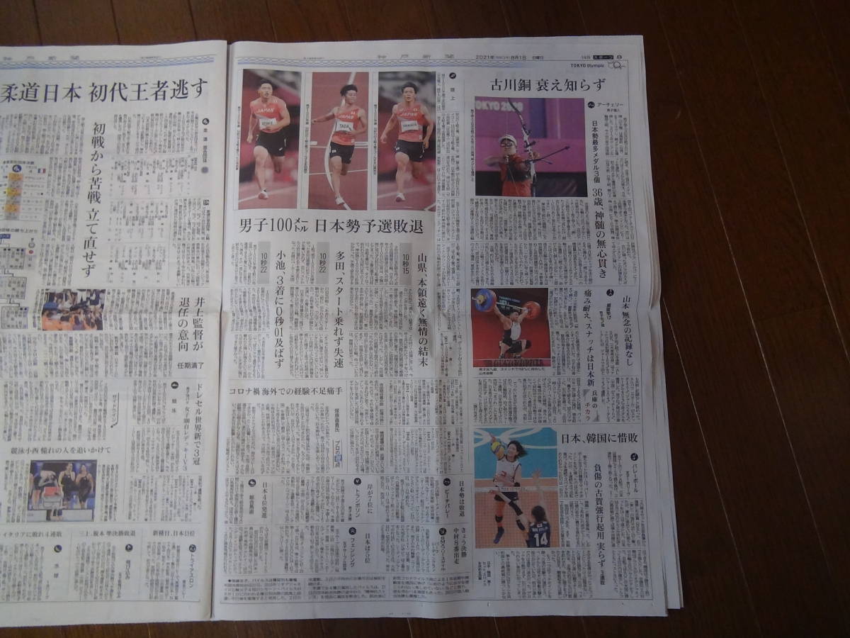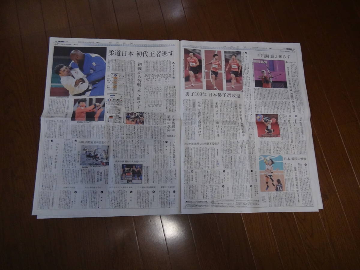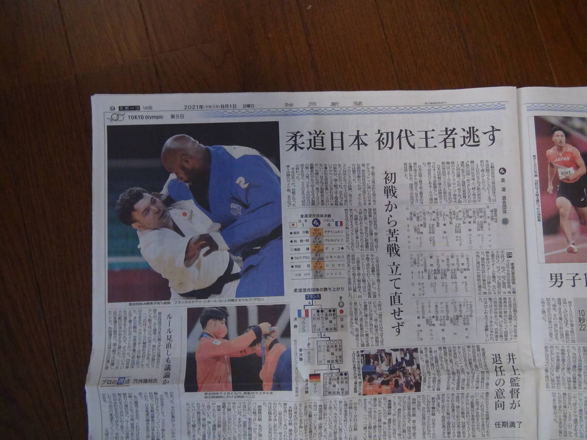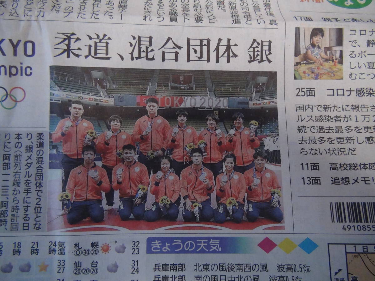 2021年8月1日の柔道混合団体銀メダルの新聞記事他 。