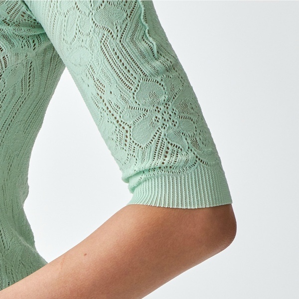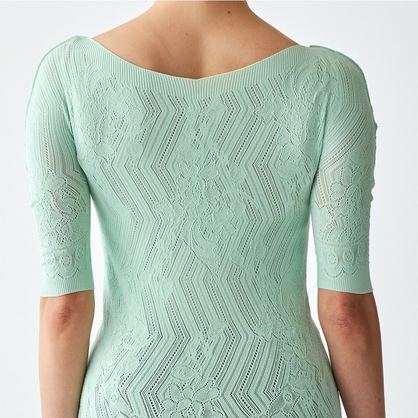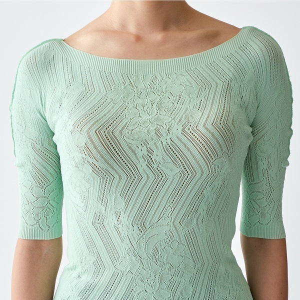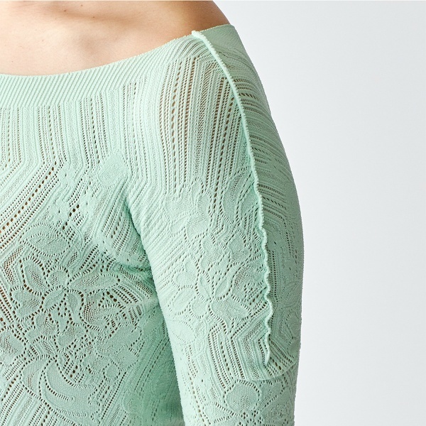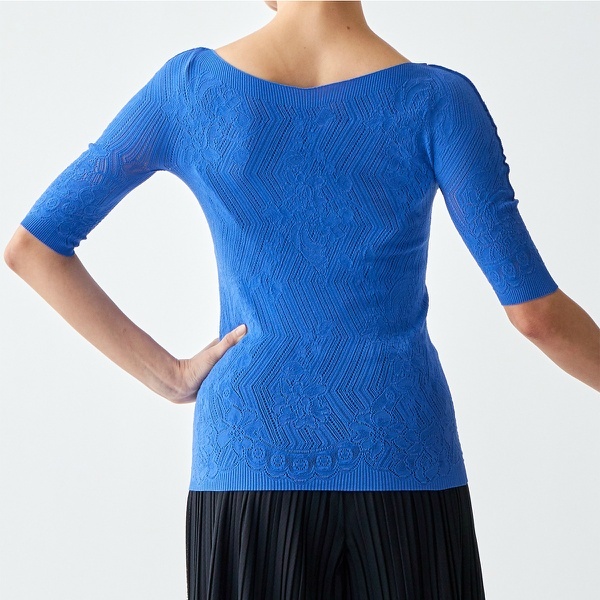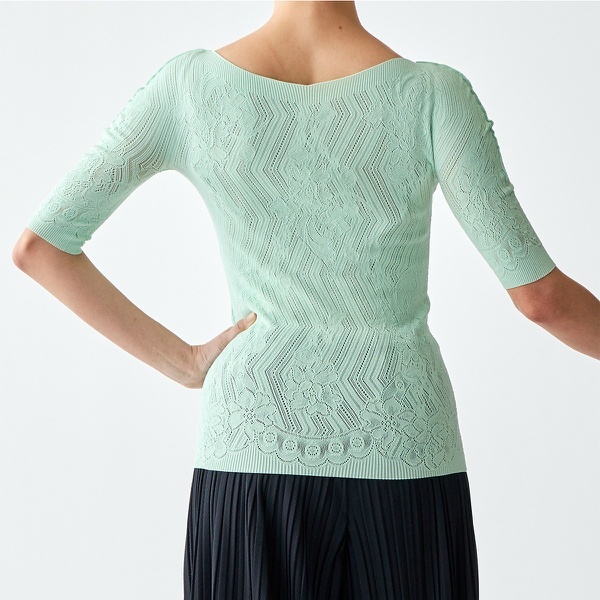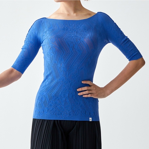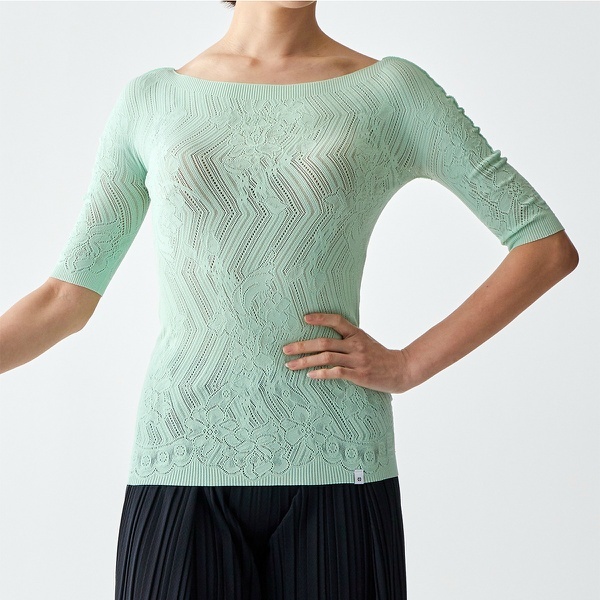 新品!! Chacott 3423ノーソーイングトップ 通常価格: 15,950円 (税込) チャコット・ソシアルダンス NO: 150302-3423-01 サイズ:S-M バスト72-87 カラー:①031アクアグリーン、(カラー シオンは売切れの為参考画像) ●前がボートネック後が浅めのV・5分袖トップ。 ●ジグザグの幾何柄編地に花柄がのったシンプルでさりげなく着用できるデザイン。 ●ミネラルパウダーが練り込まれた、アドエルムの糸を使用したノーソーイングトップ。 ●パフォーマンス時に着用することで、身体を効率よく活動させることができ、さらなるパフォーマンスの向上が期待できる。 ●テクノロジーの効果で交感神経を優位にし、ウォーミングアップをサポートすることで、すぐに動ける身体へと導く。 ●サイズ:S-M ●着丈:約56(cm) ●素材:アドエルムノーソーイングニット(ポリエステル54%、ナイロン41%、ポリウレタン5%) |