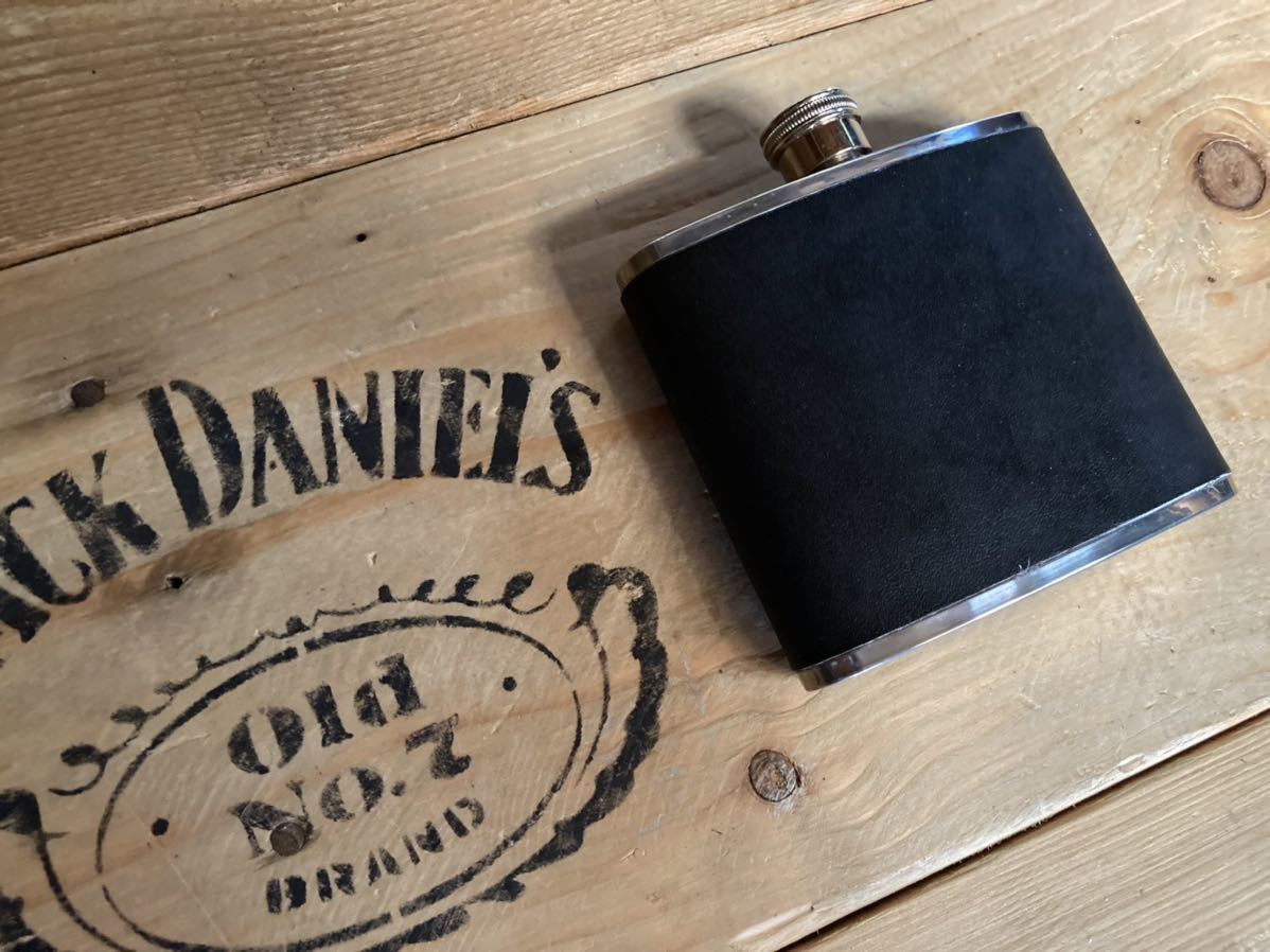 ステン★ヒップフラスコ 4オンス 角型 115ml 携帯用 レザー スキットル 酒 ボトル ウイスキー 旅行 トラベル ワイルド 寒い冬 ソロキャンプ