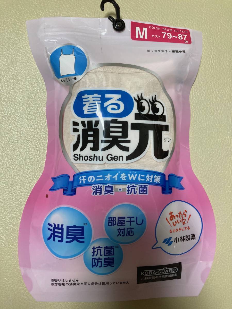 着る消臭元 新品 キャミソール ベージュ 系 肌色 系 M  小林製薬 抗菌防臭 部屋干し対応 バスト 79~87㎝ 女性用 婦人用