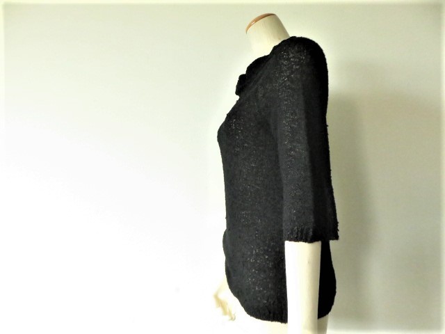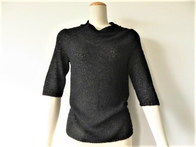 ■上質美品 ザ銀座【THE GINZA】ザ・ギンザ イタリー製ニット トップス ブラックストレッチ素材【40】11号~13号 送料198円 w603