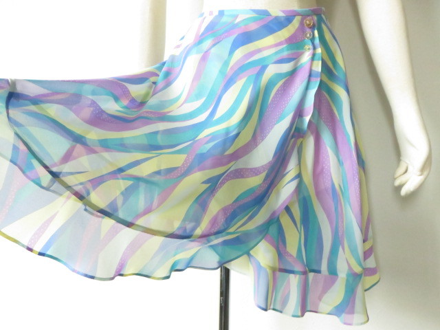 日本製 リベラル製【Q luxe 】の高級シフォン フリルスカート、お色はパステル系です。