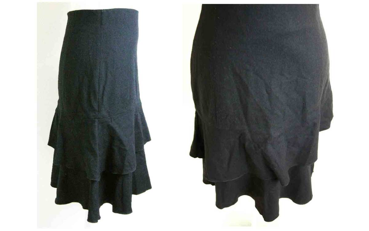 ■EMPORIO ARMANI【エンポリオアルマーニ】黒 裾 フリル ウール スカート 38