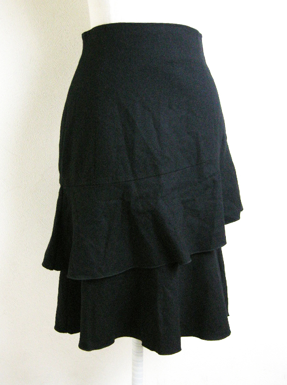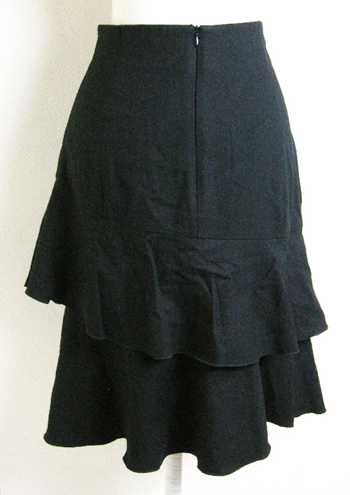 ■EMPORIO ARMANI【エンポリオアルマーニ】黒裾フリルウールスカート・38■