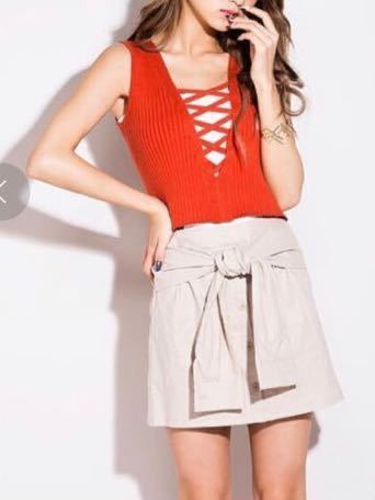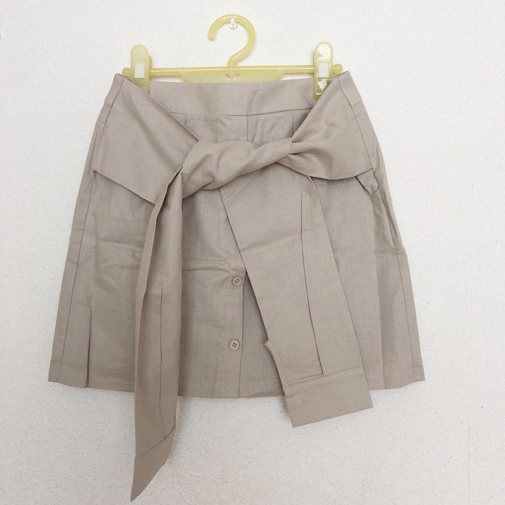 袖部分を結ぶと、まるでシャツを腰に巻いているかの様なアレンジデザインのミニスカートです。