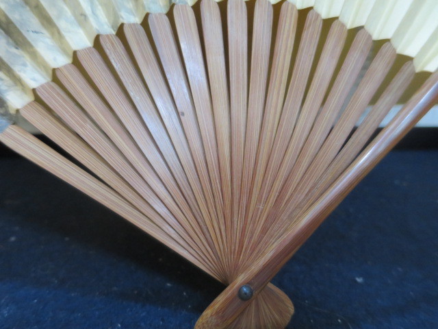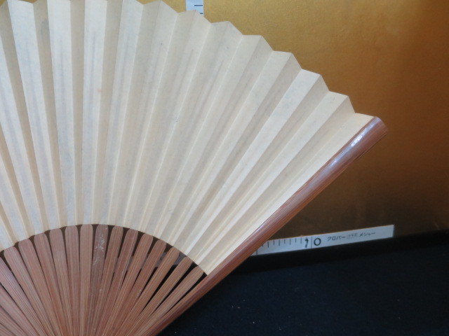 「時代の有る扇子E-171-38」 マニアより出ました。 明治~大正時代 扇骨21本 開きサイズ38.5cm長さ25cm 新品では在りません。時代の有るお品ですのでご理解のある方の 入札を望みます。 |