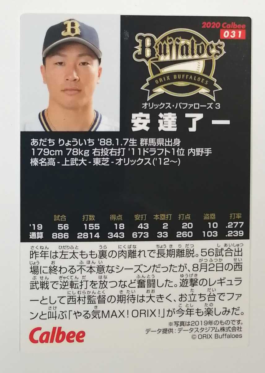 安達了一(031)オリックス・バファローズ/2020プロ野球チップス第1弾カード【即決】