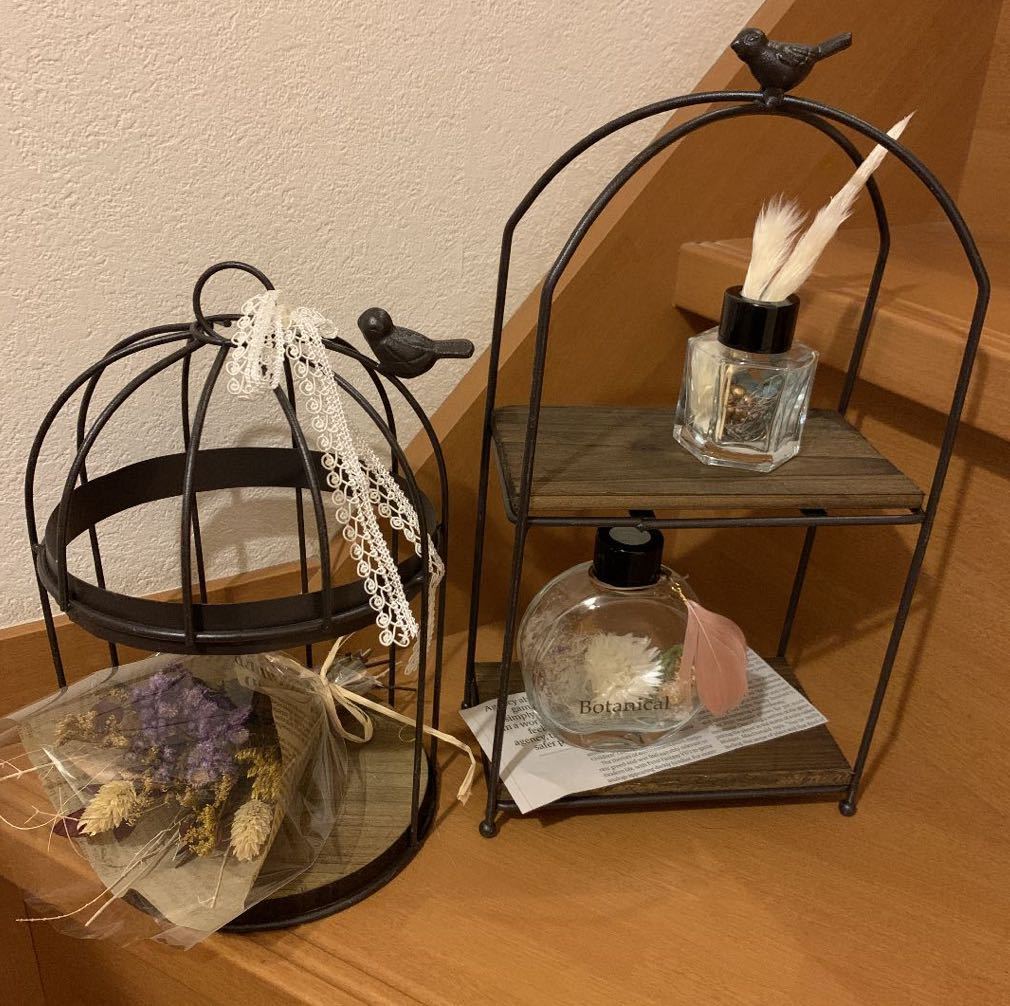 アンティークの鳥かご風&ラックセットです。