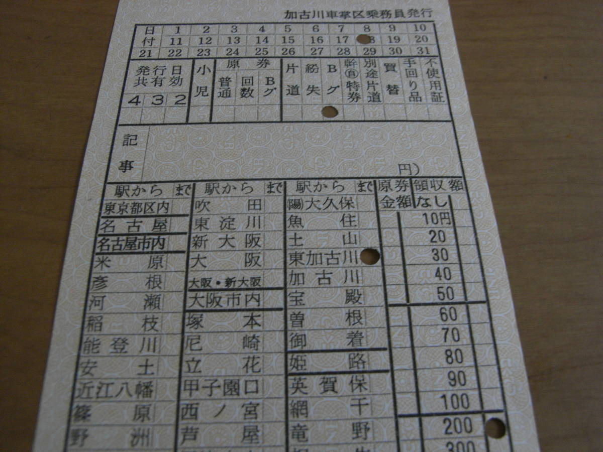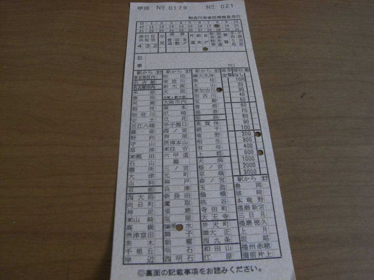 国鉄 車内補充券 加古川車掌区乗務員発行 0179-021