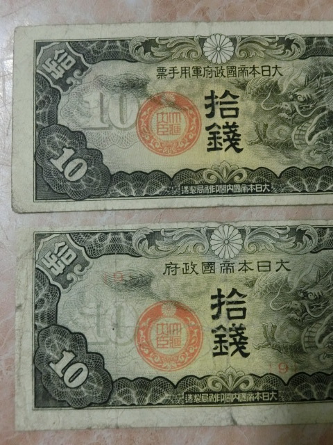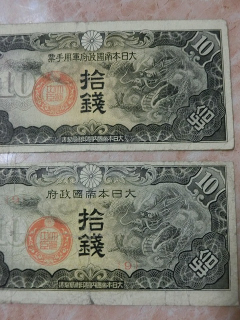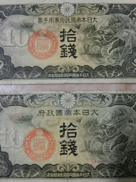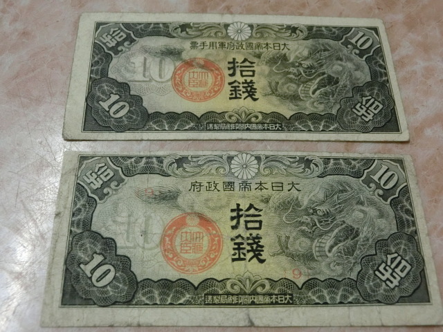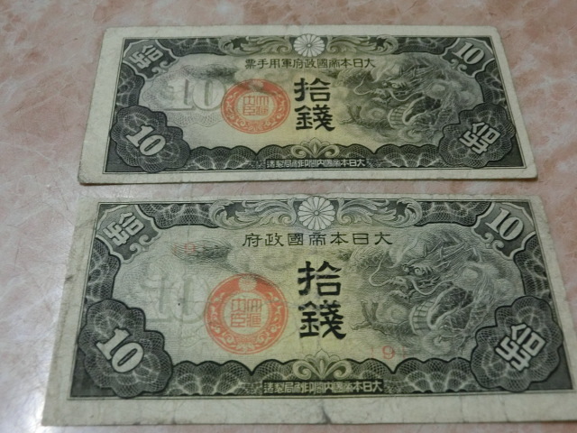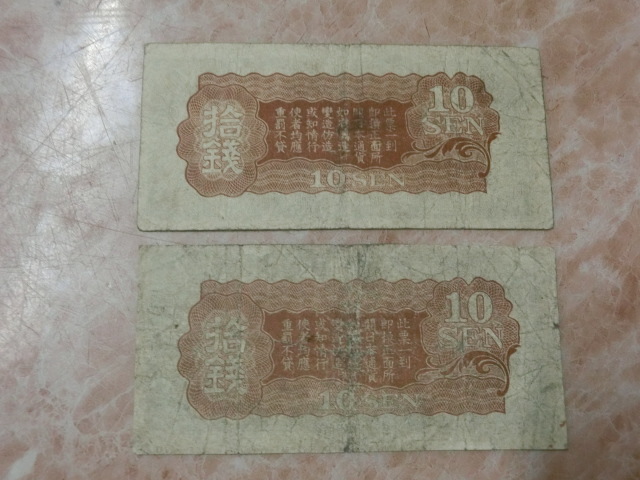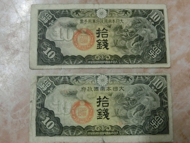 ★ 日華事変軍票 丁号10銭・戊号10銭 2枚セット ★ No.80