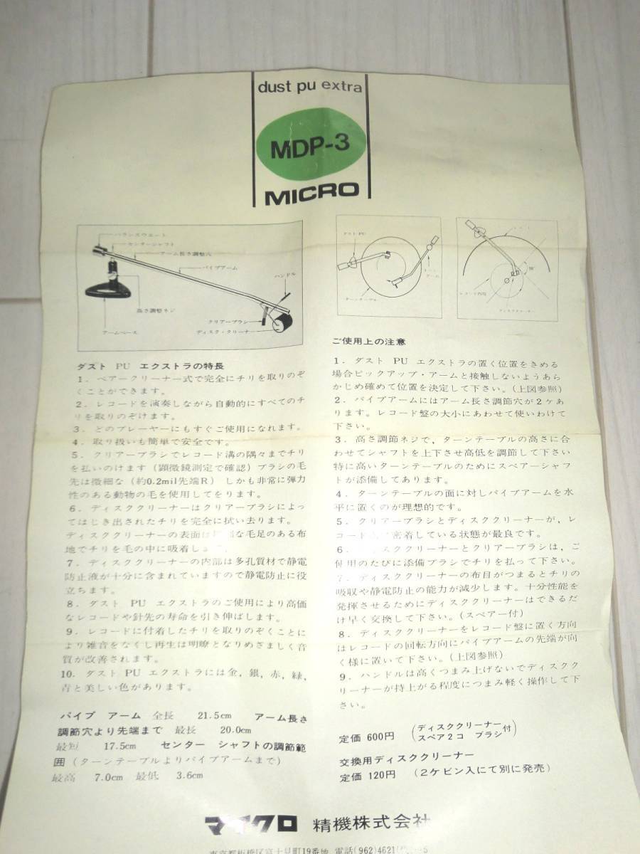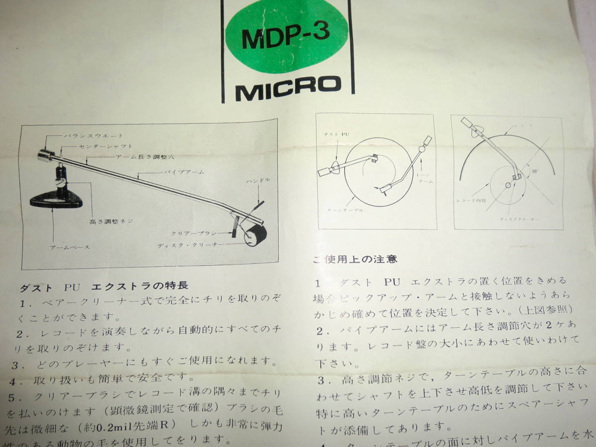 レコードクリーナー DUST PU EXTRA MDP-3 マイクロ精機製 中古です