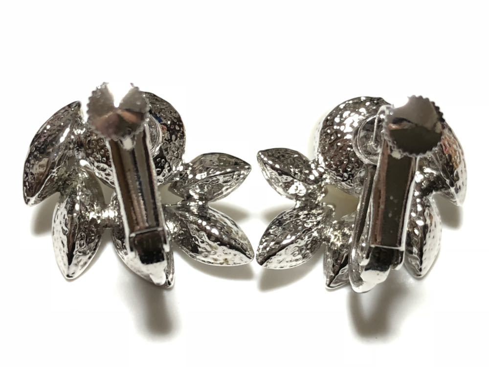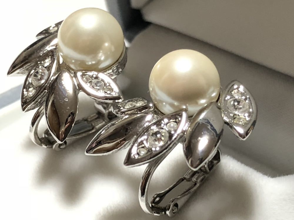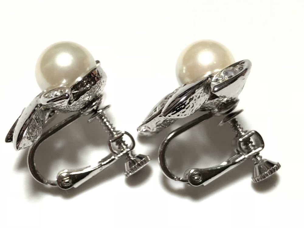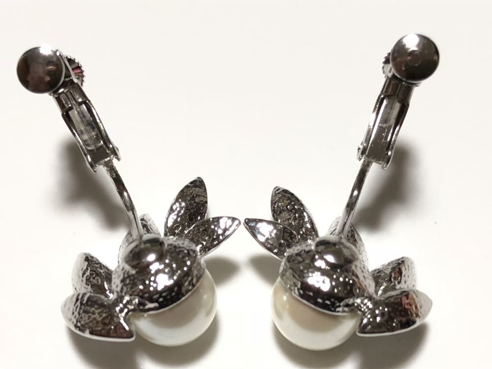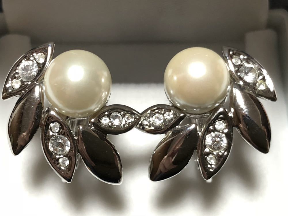 フェイクパール、ジルコニアを使用した、デザインイヤリングです。
