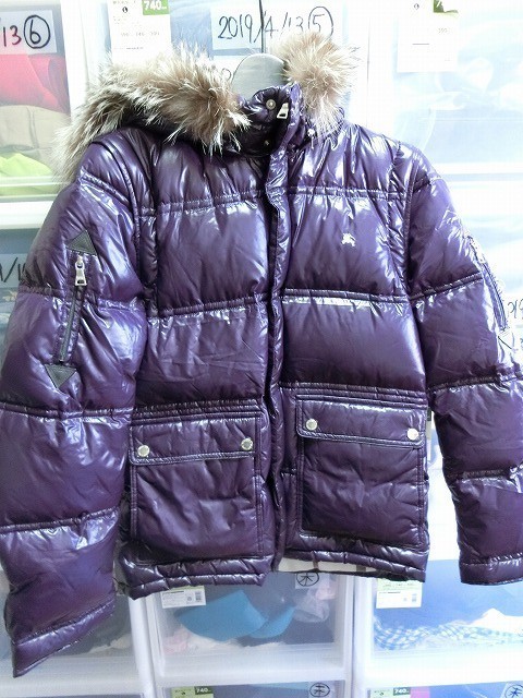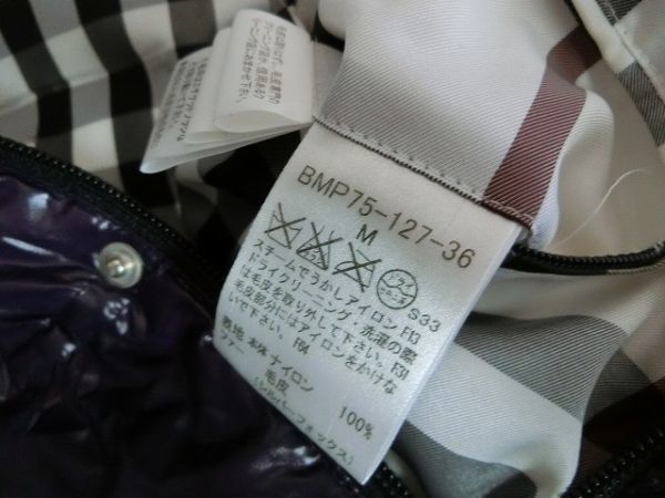 BURBERRY BLACK LABEL ファー付きダウンジャケット M パープル #BMP75-127-36 バーバリーブラックレーベル