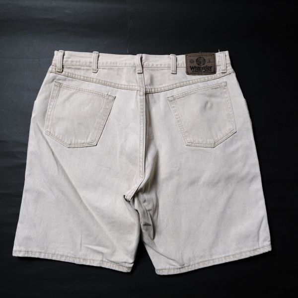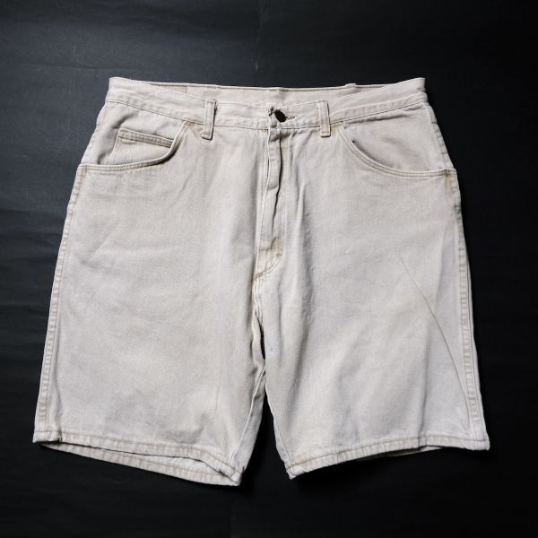 90's USA製 ラングラー 606 カラーデニム バギーショーツ (36) カーキ系 ルーズフィット オリジナルレングス 90年代 アメリカ製 オールド