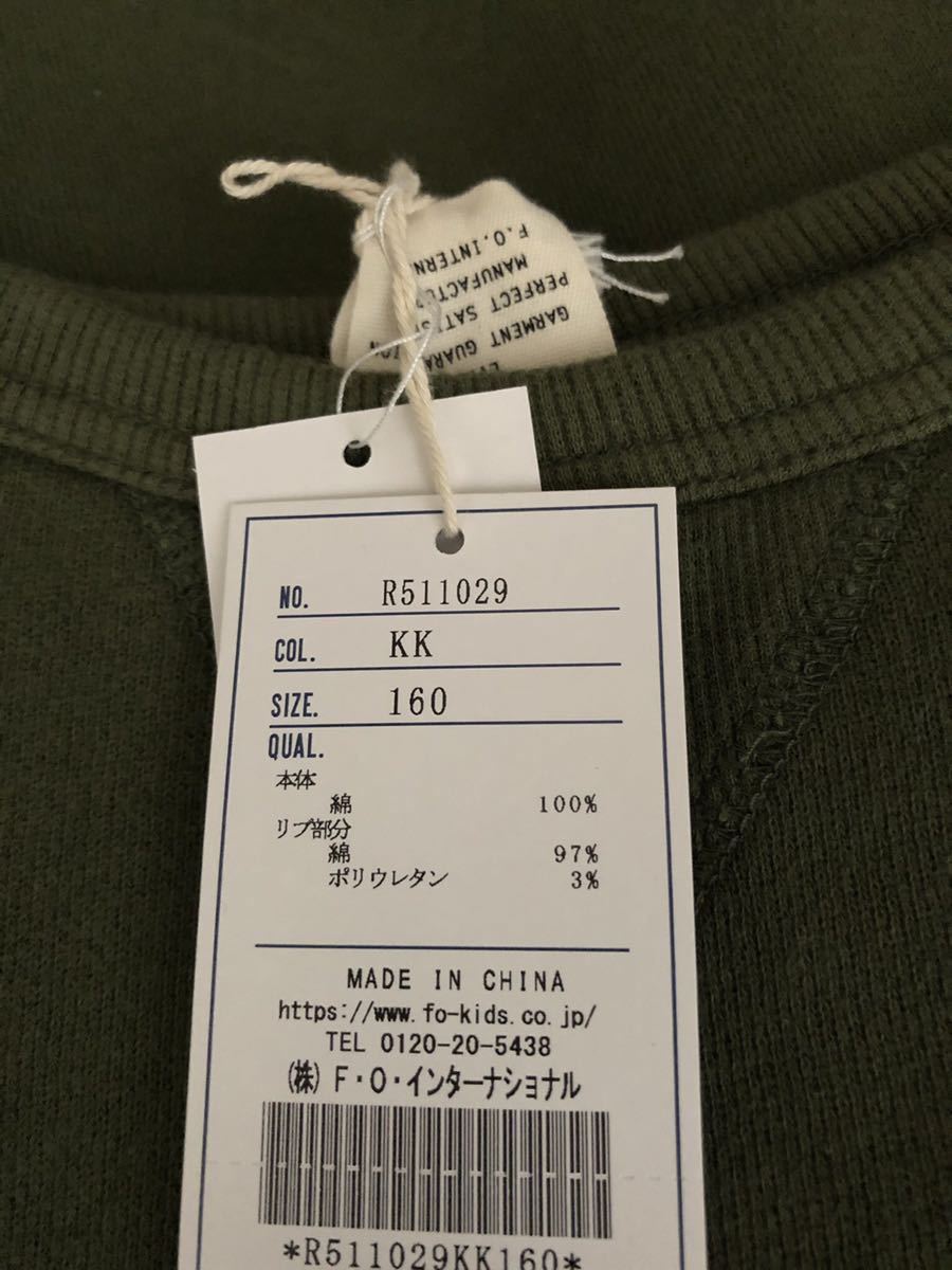 F.O.KIDS エフオーキッズ 裏起毛 ガゼットトレーナー 160cm カーキ スウェット 無地 BREEZE ブリーズ