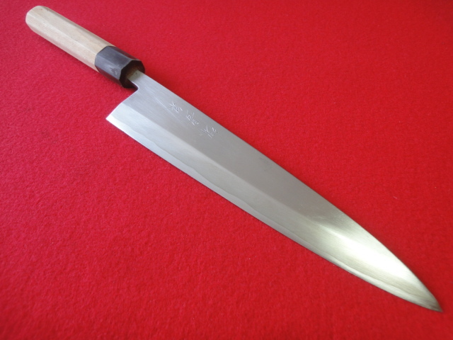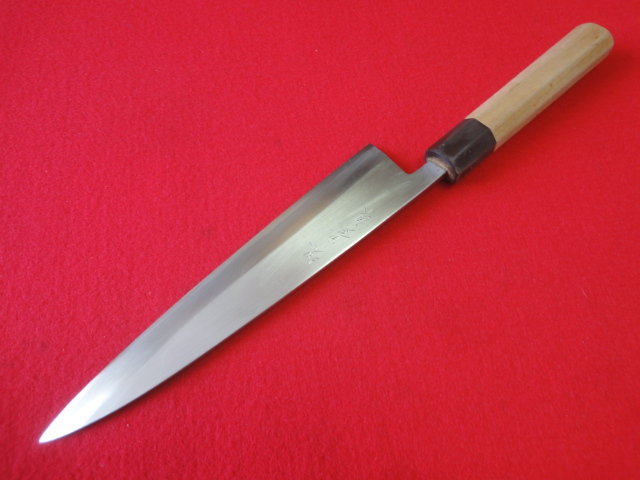 【堺豊泉】身卸出刃包丁 ※本鍛錬 極上 八角柄 刃渡22.5㎝ 全長38.5㎝ 峰厚5.8㎜ ※片刃 中古品 全国一律送料1100円