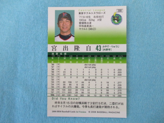 ★BBM 2008★1st Version〔208 宮出隆自 東京ヤクルトスワローズ〕トレカ♪