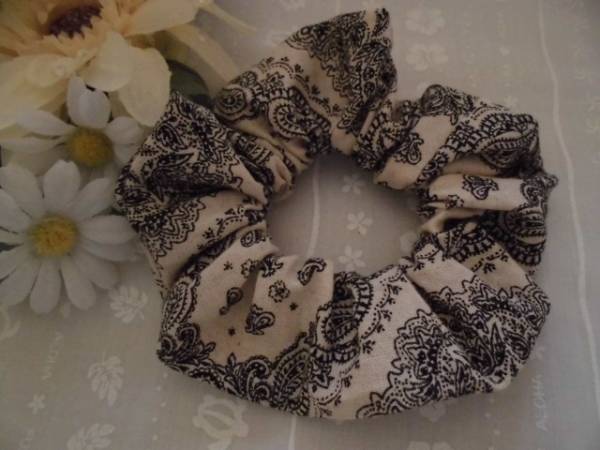 ★シュシュ★◆バンダナ柄◆ペイズリー◆綿麻◆生成り系