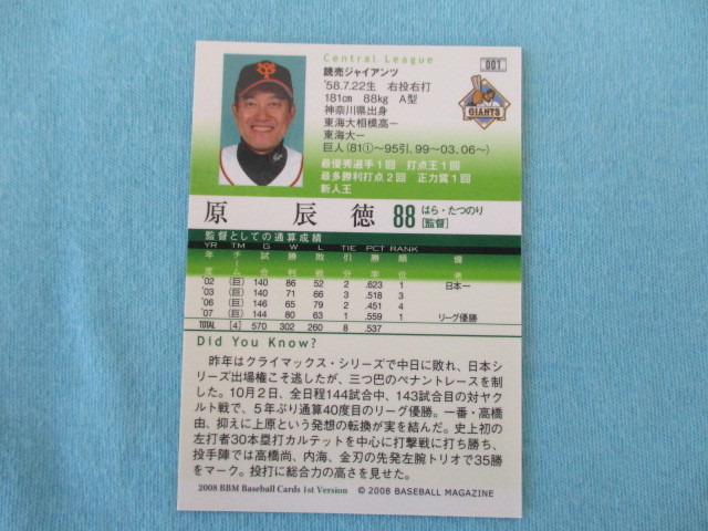 ★BBM 2008★1st Version〔001 原辰徳 読売ジャイアンツ〕トレカ♪