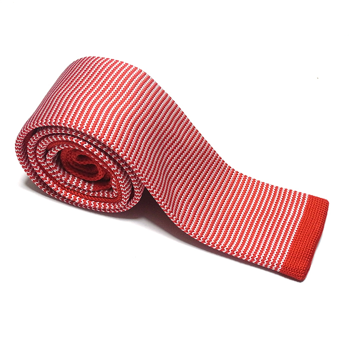 ネクタイ ニットタイ 細いボーダー レッド×ホワイト 赤×白 tie-0120