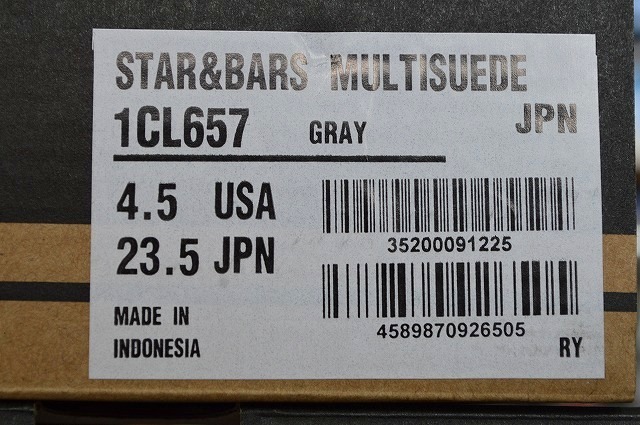 新品未使用 CONVERSE コンバース STAR&BARS MULTISUEDE マルチスエード スエード 1CL657 グレー US4.5 23.5センチ ¥13,200 送料無料