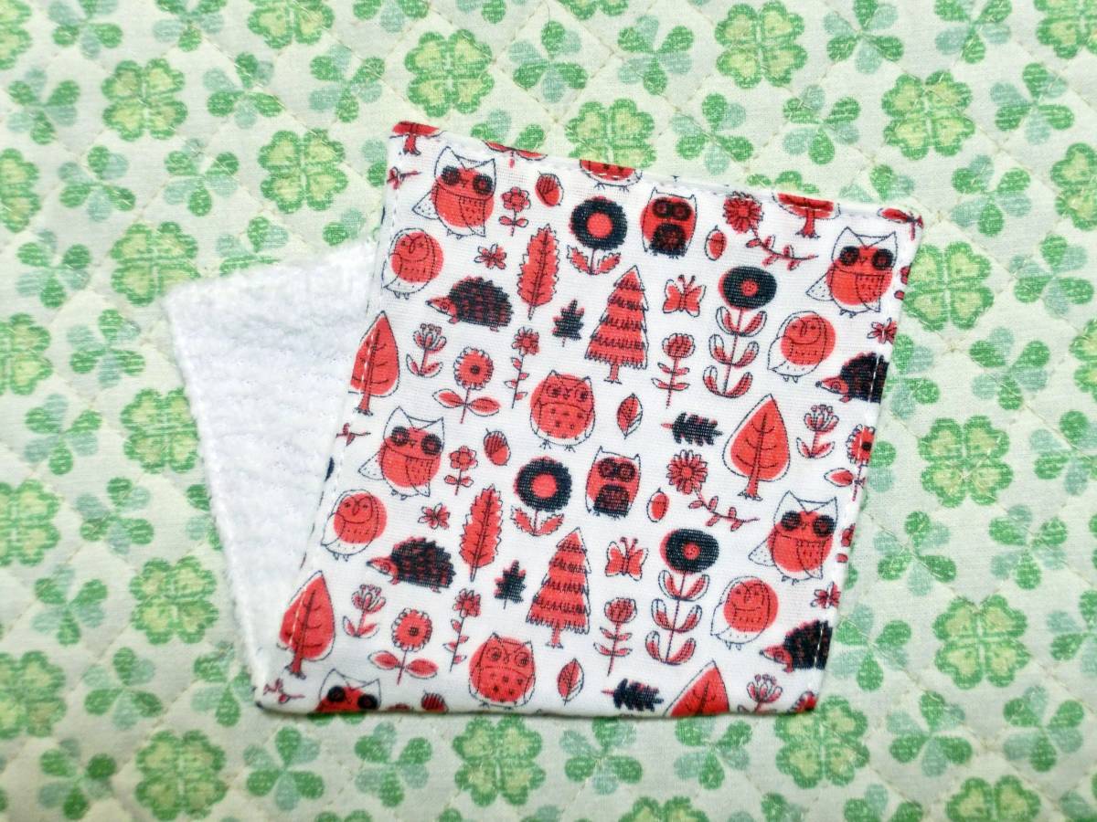 ★46★ふくろう★ハーフハンカチ★20×10㎝★ダブルガーゼタオル★handmade★