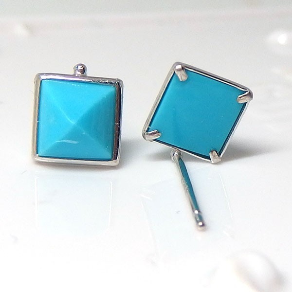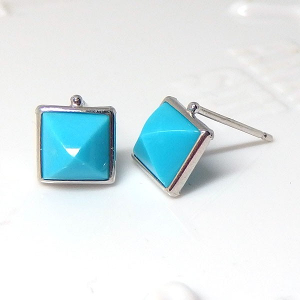 【送料無料】K18WGスリーピングビューティ天然ターコイズピラミッドピアス■2256