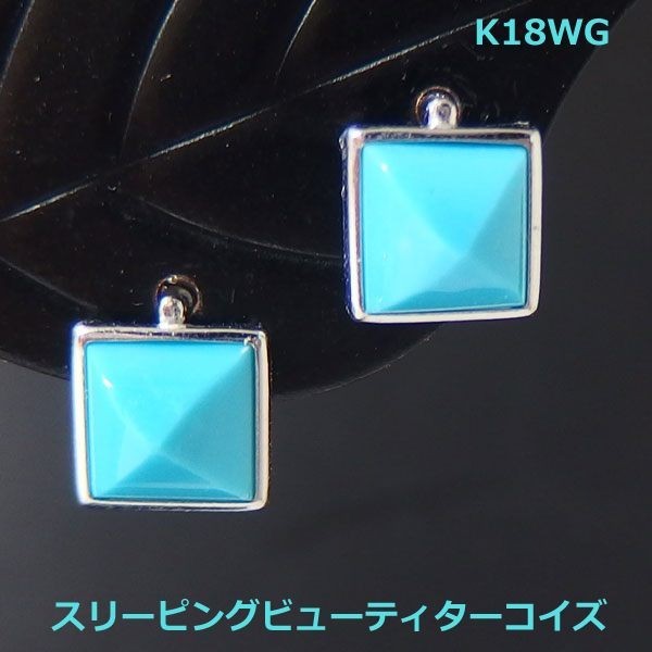 商  品  名K18WGスリーピングビューティ天然ターコイズピラミッドピアス■2256