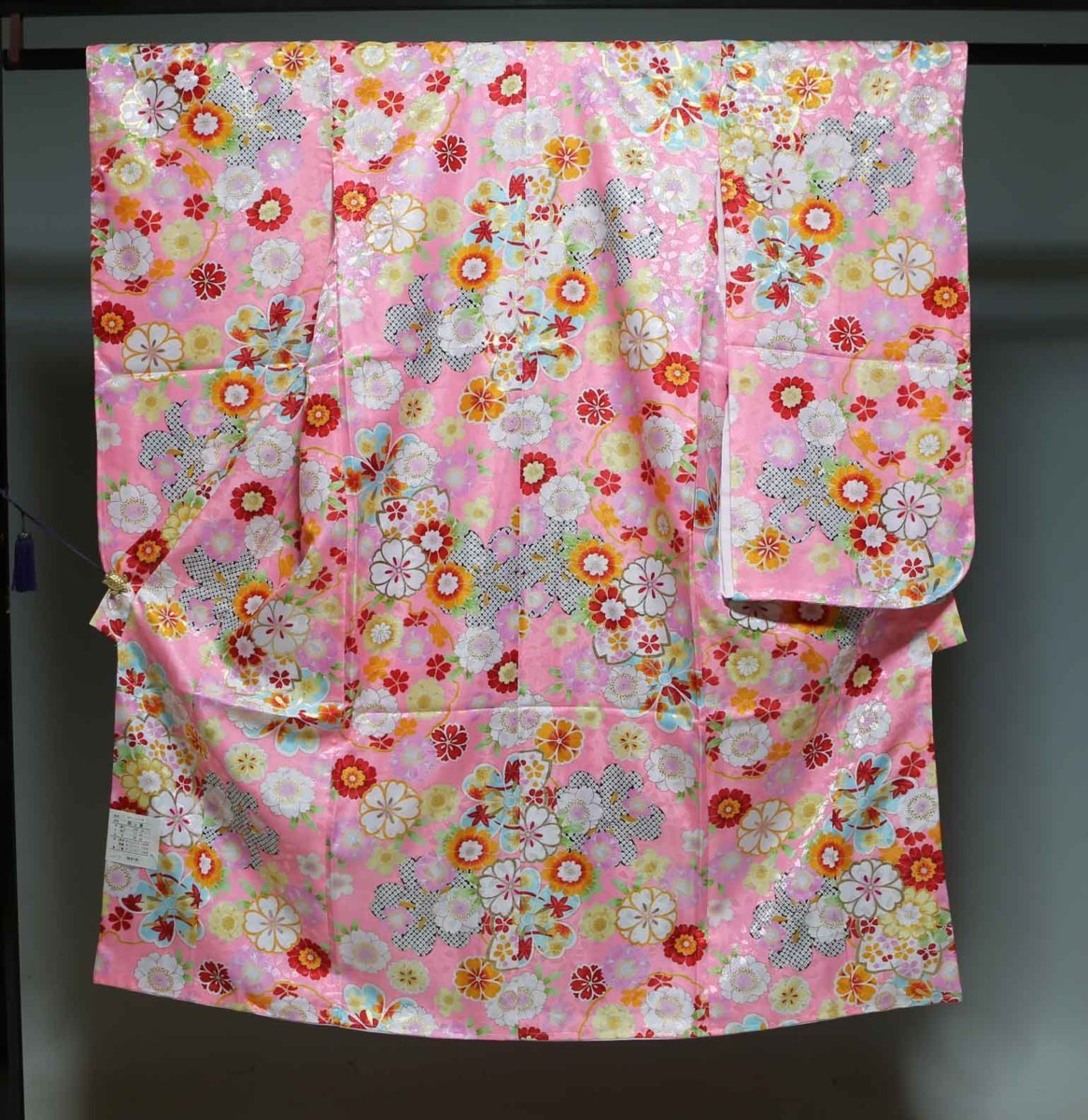 素材 ポリエステル サイズ 身丈約132cm 袖丈 約 74cm 裄丈 約58cm 四つ身 と 呼ばれているサイズです | |