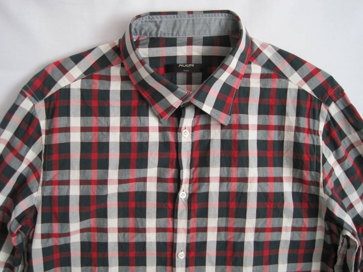 アリーニ エルボーパッチ チェックシャツ 。サイズ42 。イタリア製。