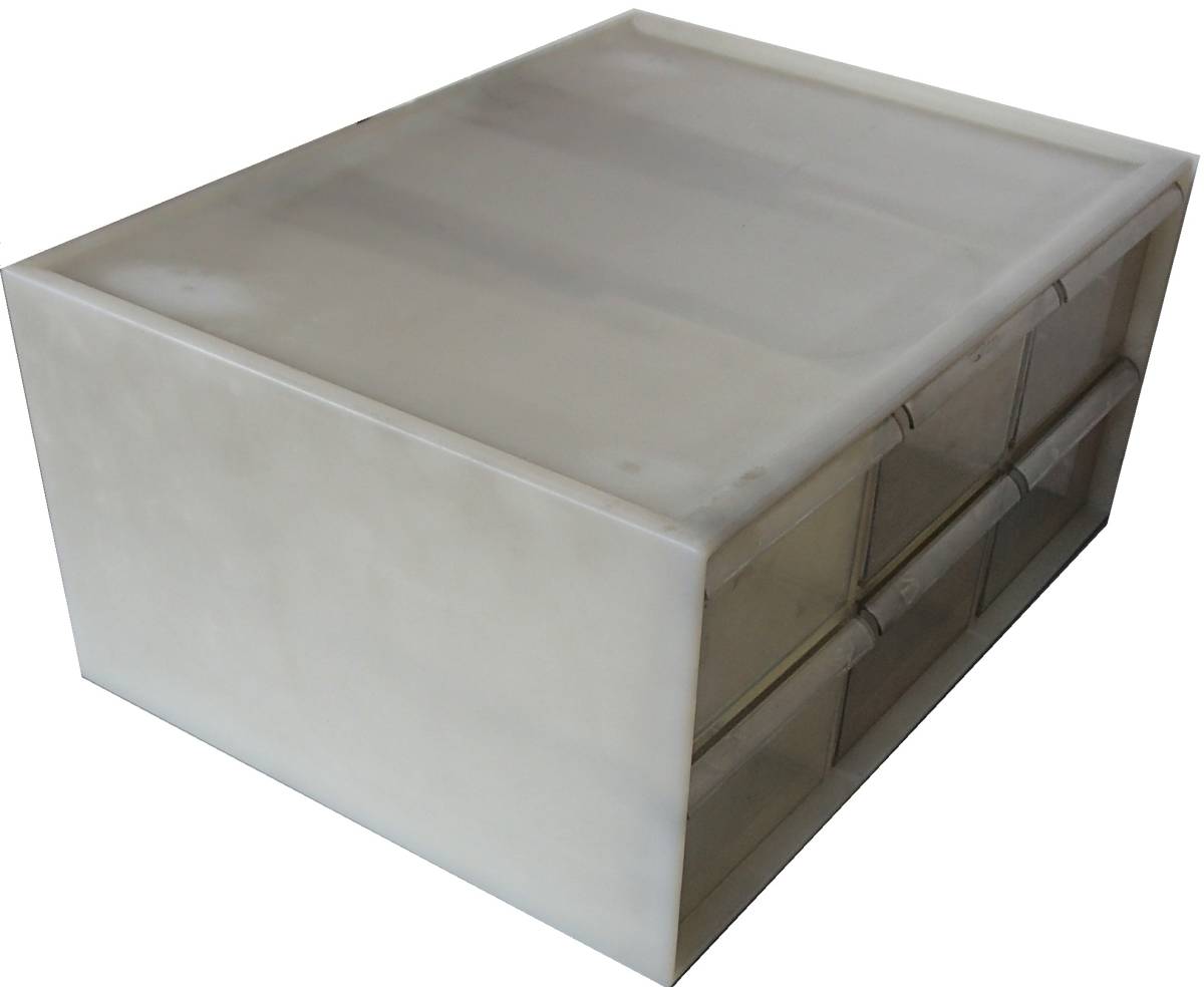 600/卓上 収納 整理 ボックス ケース/2段6個 幅深引き出し 仕切り溝付/H18×W38×28/小物 工具 文具 調味料 ファッション/多目的/USED