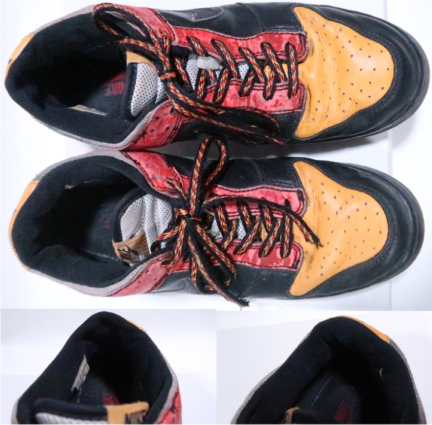 2005年製造モデルで、流通量の少ないレアモデルです。ダメージはアウトソールヒール部分の擦れ、アッパーの褪色です。ビンテージに御理解頂ける方のみ御検討御願い致します。