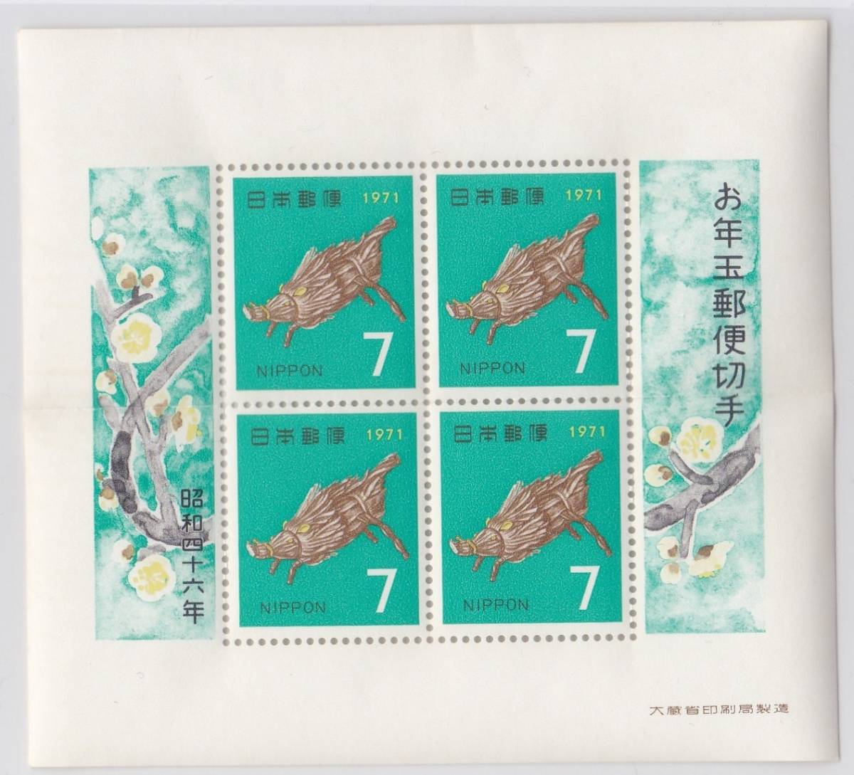【お年玉】お年玉切手シート 昭和46年 亥年7円 (折り目あり)
