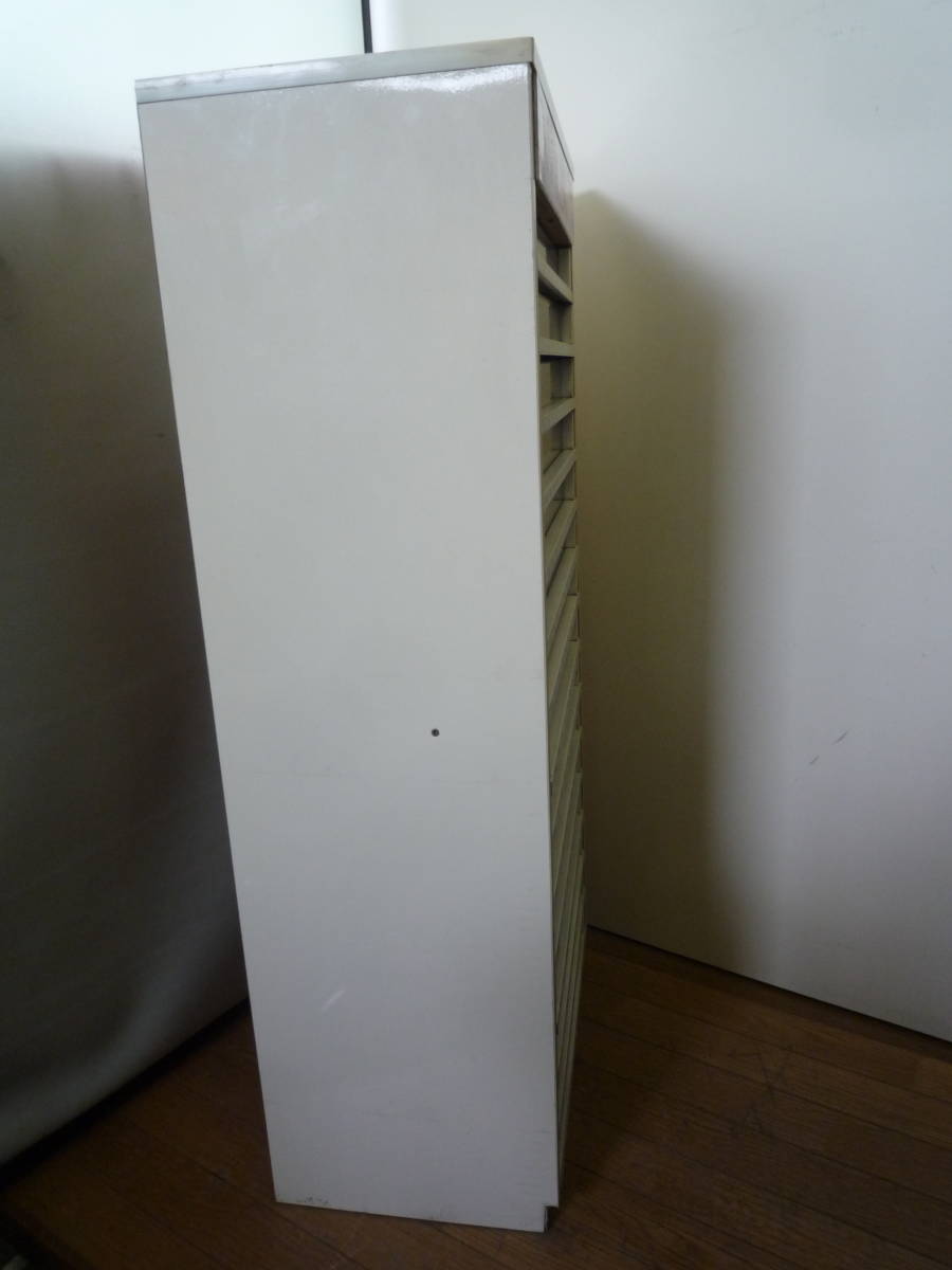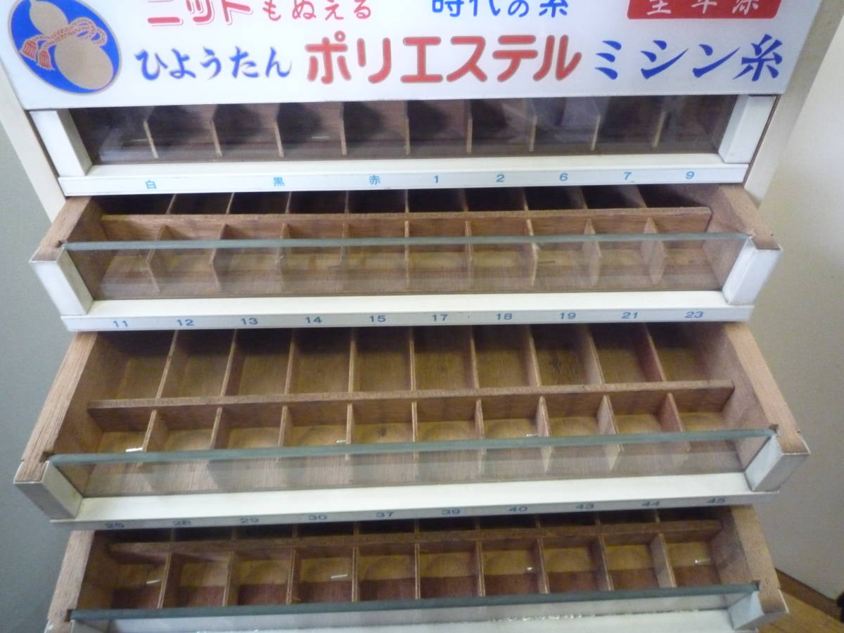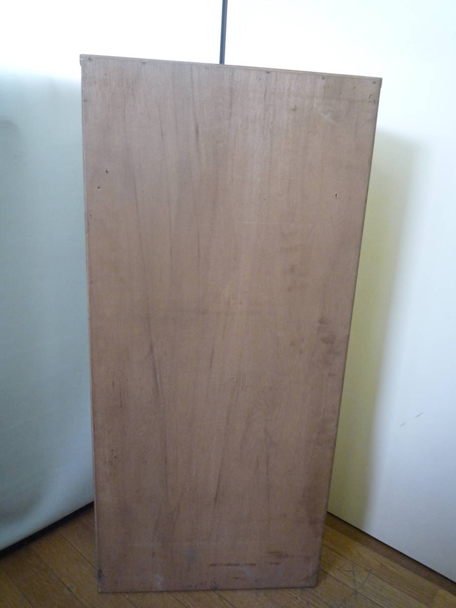 | 業務で使われていた古い販売店用陳列ケースです。 一般的に販売されていない物なので入手は難しいかと思います。 当時物ですが、かなり良い状態を保っているかと思います。 サイズはおおよそとなりますが、幅 41㎝ 奥行 26㎝ 高さ 89㎝ となります。 一番上が収納ケース1段で収納スペースは18.5㎝×35㎝ 高さ5.5㎝となります。 それ以降の下段ミシン糸収納前面1マスは3.5㎝×3.5㎝となります。 前面の見える部分のクリアー部分はガラスとなります。 絹カード巻きの収納ケースにも良いですが、チョロQやミニカー、小物の収納ケースにもいかがでしょうか? |