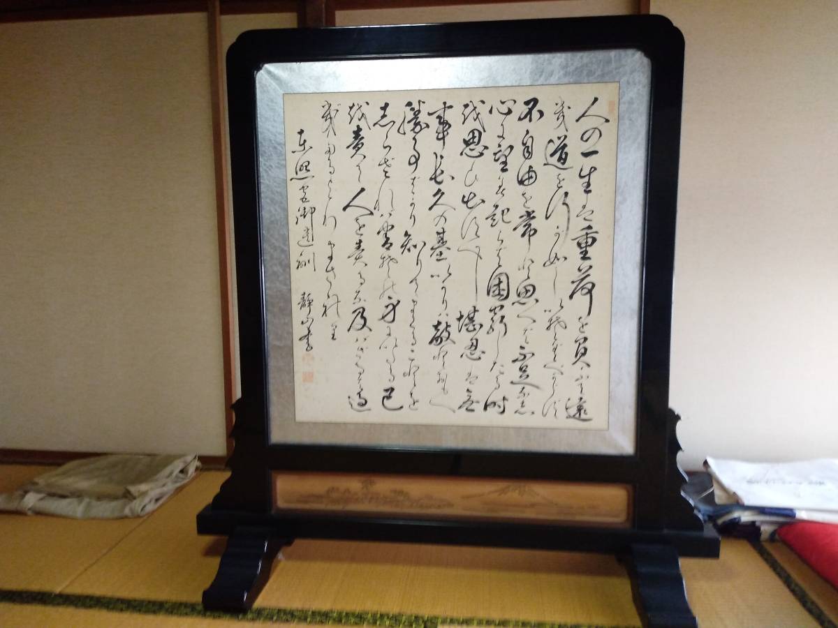 引取限定 紙本 肉筆 鐙谷抱圓筆(北海道) 衝立 裏側 書 本間静山筆です。古い物になりますので、絵や書にシミもあります。画像ご確認してお願いします。こちらは引取限定になりますのでよろしくお願いします。サイズは幅約112センチ、高さ約144センチ、台座の奥行き約52センチです。素人採寸ですので、多少の誤差はお許し下さい。