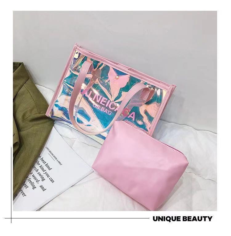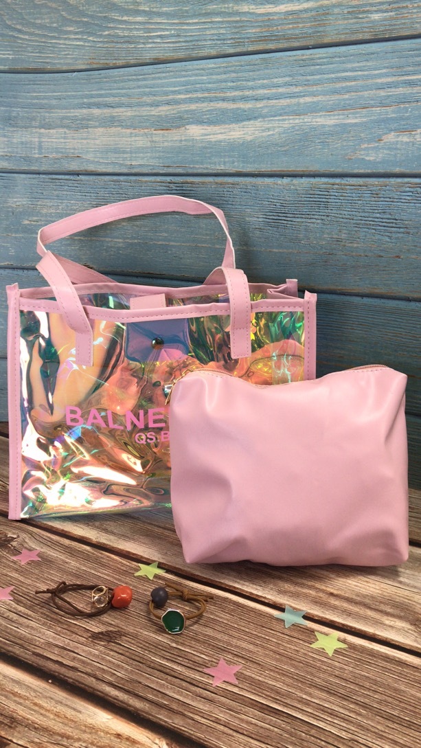 ビニールトートバッグ ポーチ付き レディース バッグ
