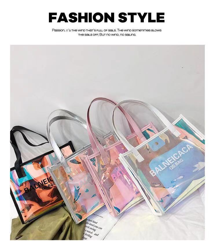 【用途】ハンドバック、メッセンジャーバッグとして使えます。中にあるポーチを取り出すと、透明バッグになります。ポーチだけにもほかのバッグに入れて、小物収納することができます。お好みの使い方を選らんで利用してください。カジュアルなデザインでさまざまなシーンで活躍しています