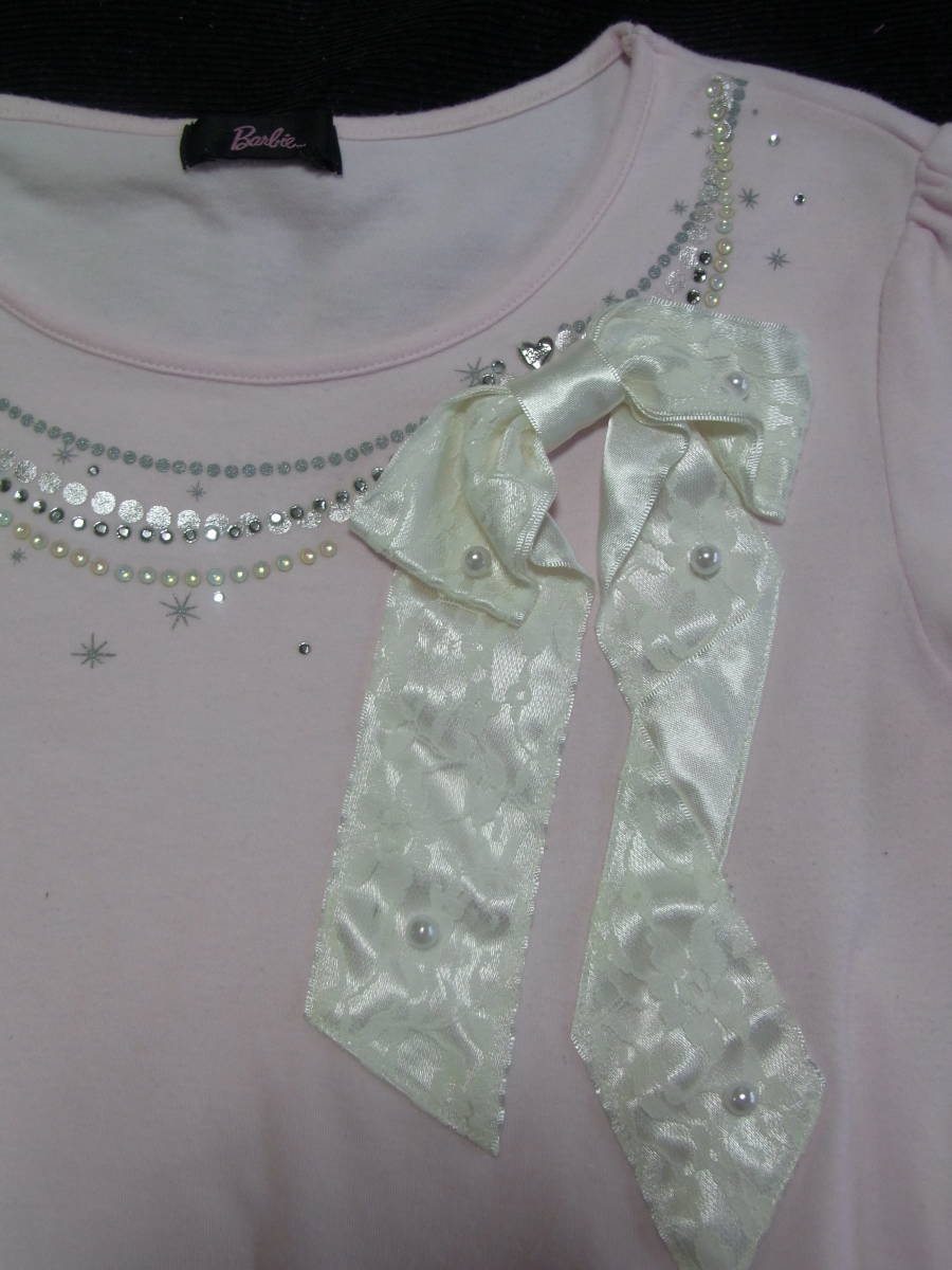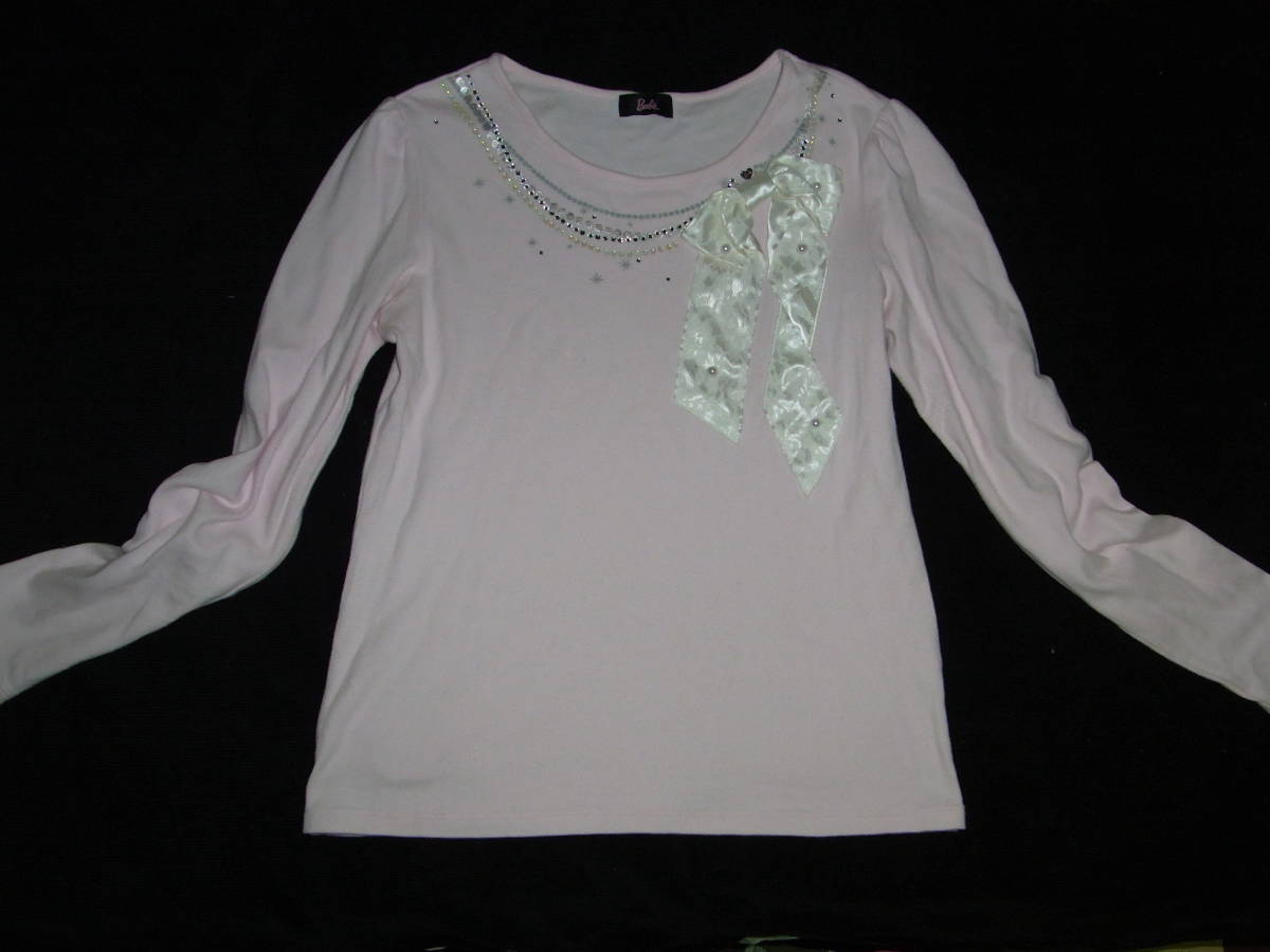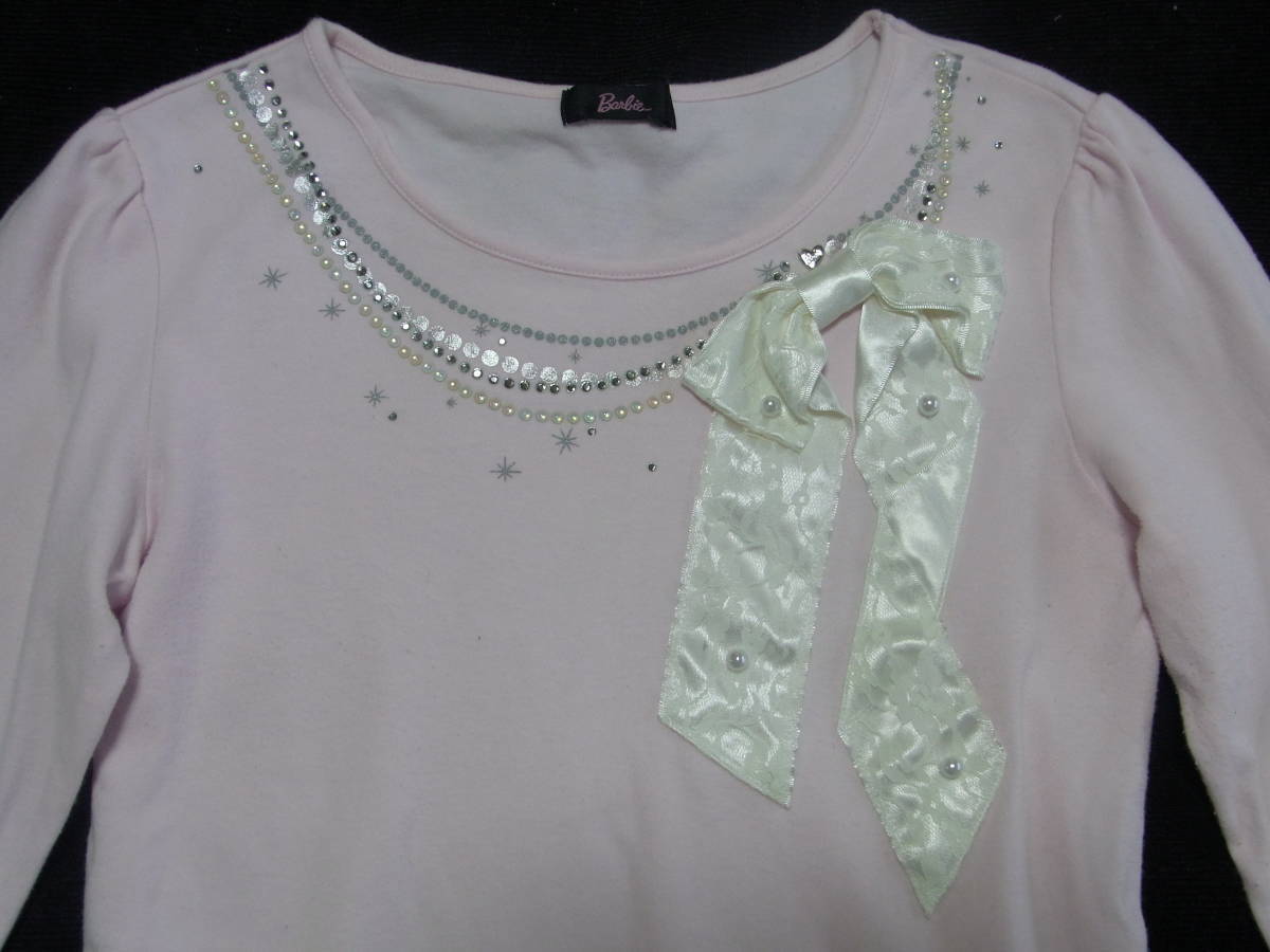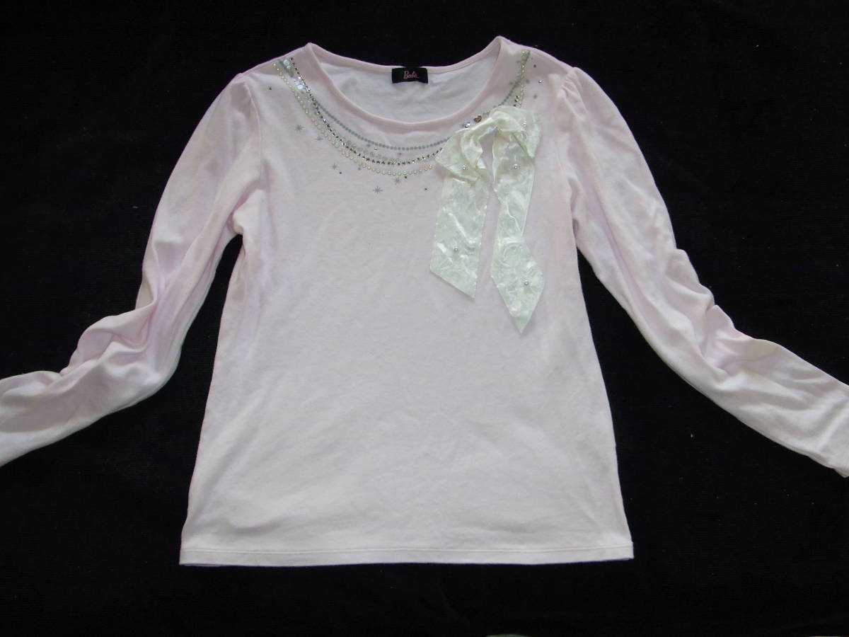 ★美品★Barbie★バービー★可愛い女の子★リボン★キラキラ★100%棉★厚手★薄いピンク色★長袖Tシャツ★サイズ160